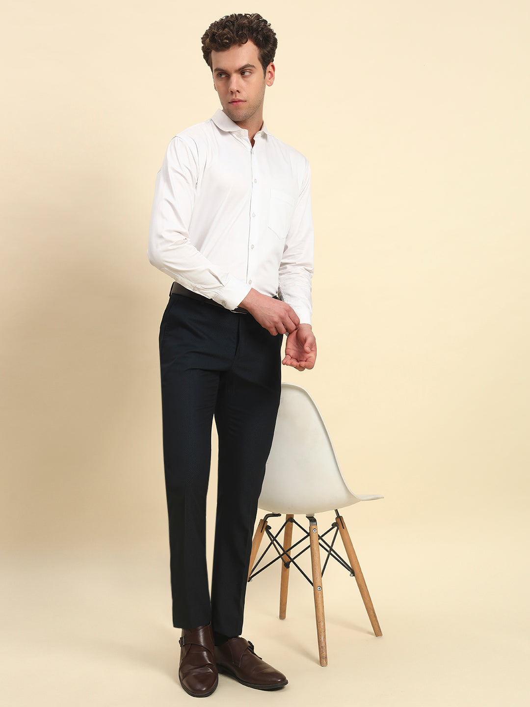Formal Trouser for Men l Breathable & Soft with Color Fastness Regular Fit Terry Rayon Fabric Self Design Pattern Button Closure