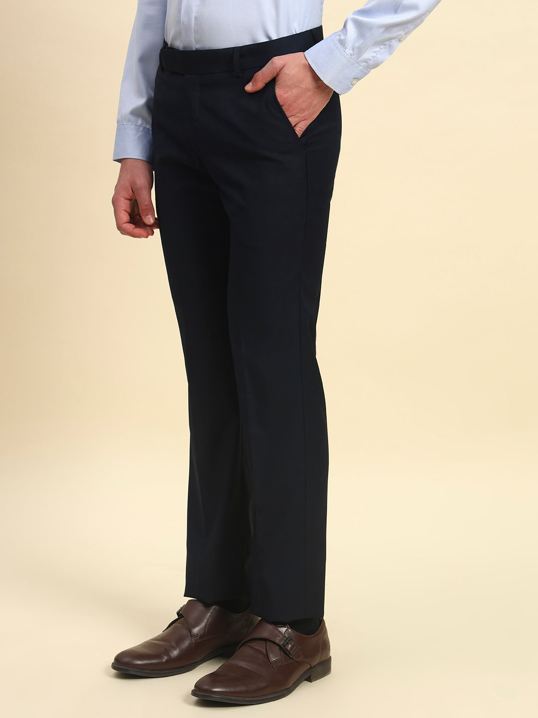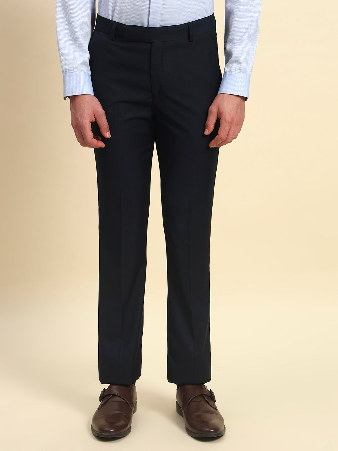 Formal Trouser for Men | Breathable & Soft with Color Fastness Regular Fit Terry Rayon Fabric Solid Pattern Hook & Bar Closure