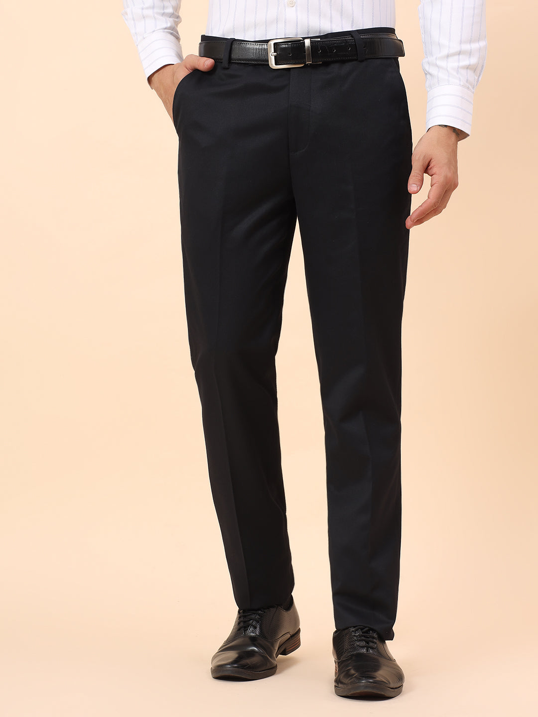 Formal Trousers for Men l Breathable & Soft with Color Fastness Regular Fit Poly Viscose Fabric Solid Pattern Hook & Eye Closure
