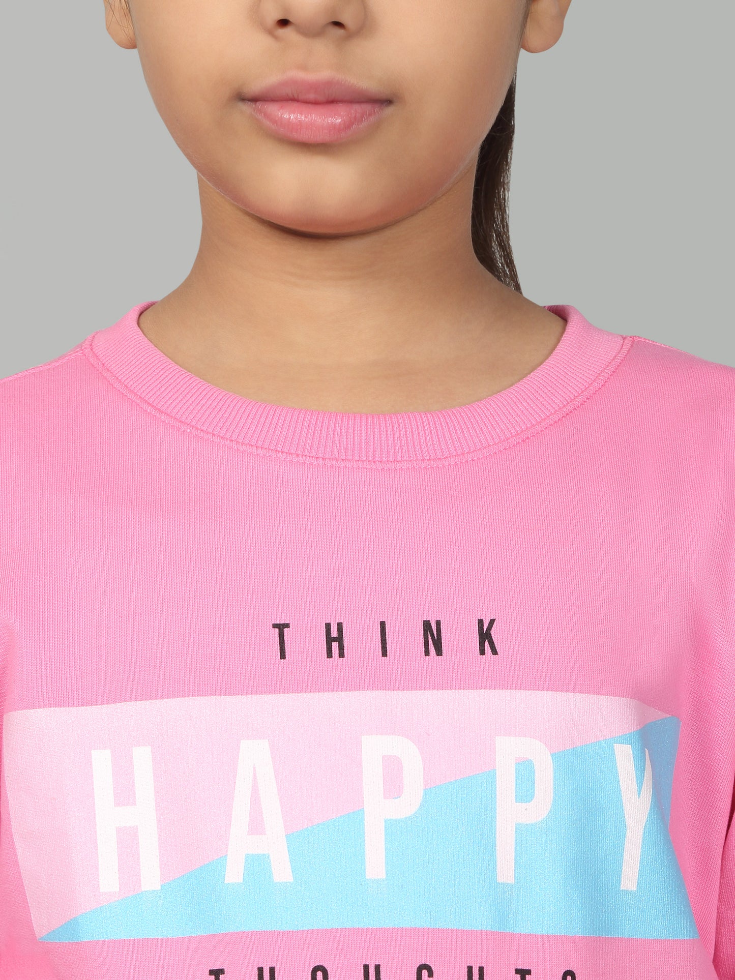 Girl's Casual Pink Full Sleeves Round Neck T-Shirt