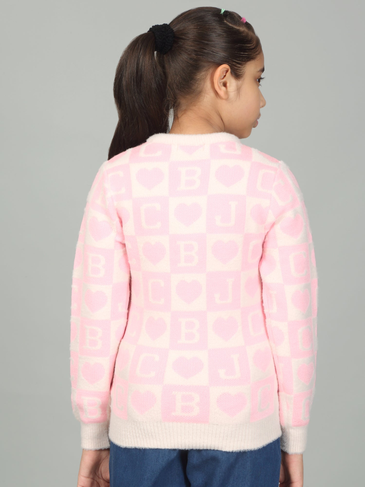 Girls Casual Self Design Pink Full Sleeves Sweater