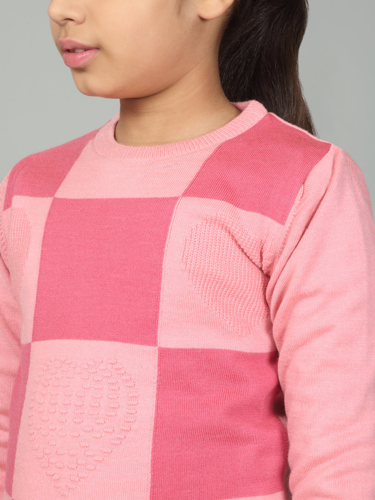 Girls Casual Self Design Pink Full Sleeves Sweater
