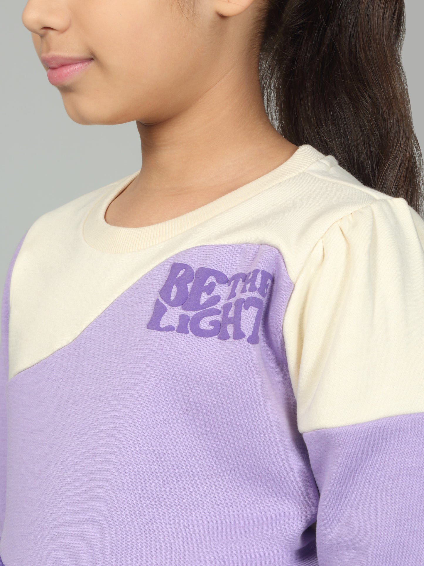 Girls Colorblock Purple Round Neck Sweatshirt