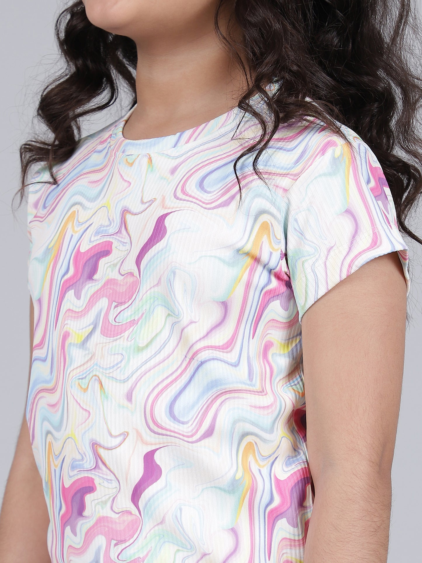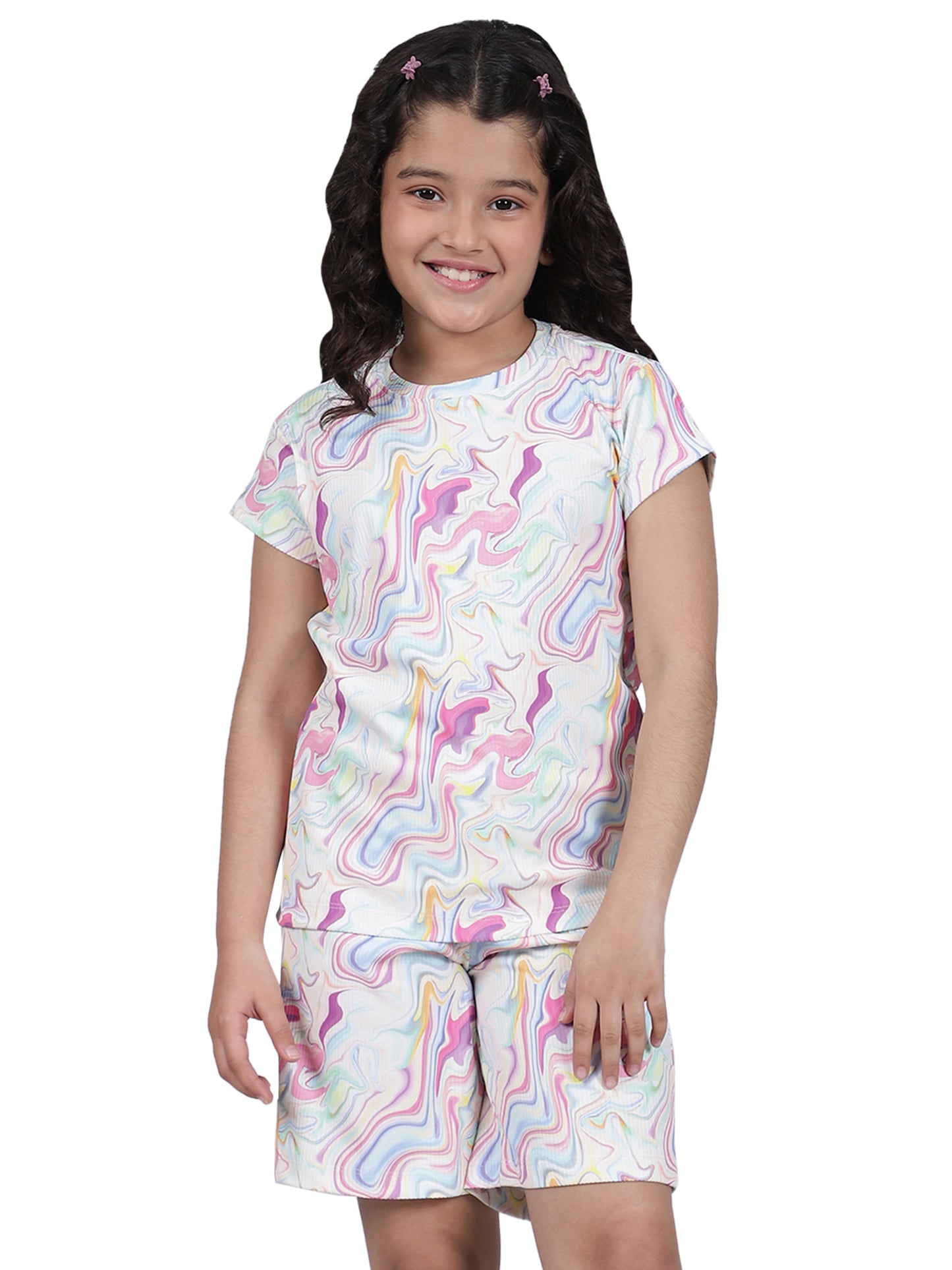 Girls Printed Pink Round Neck Half Sleeves Casual Co-ord-set