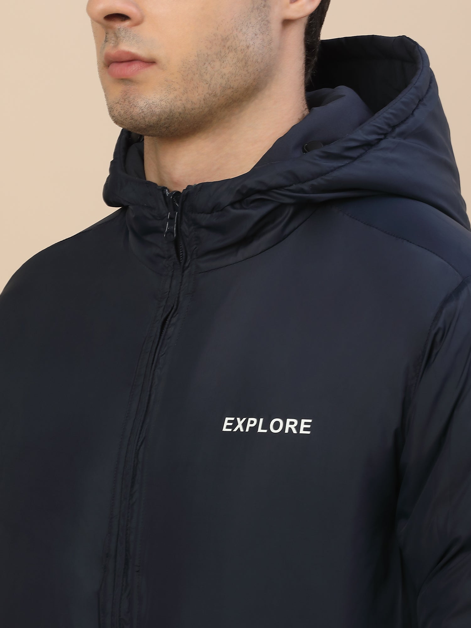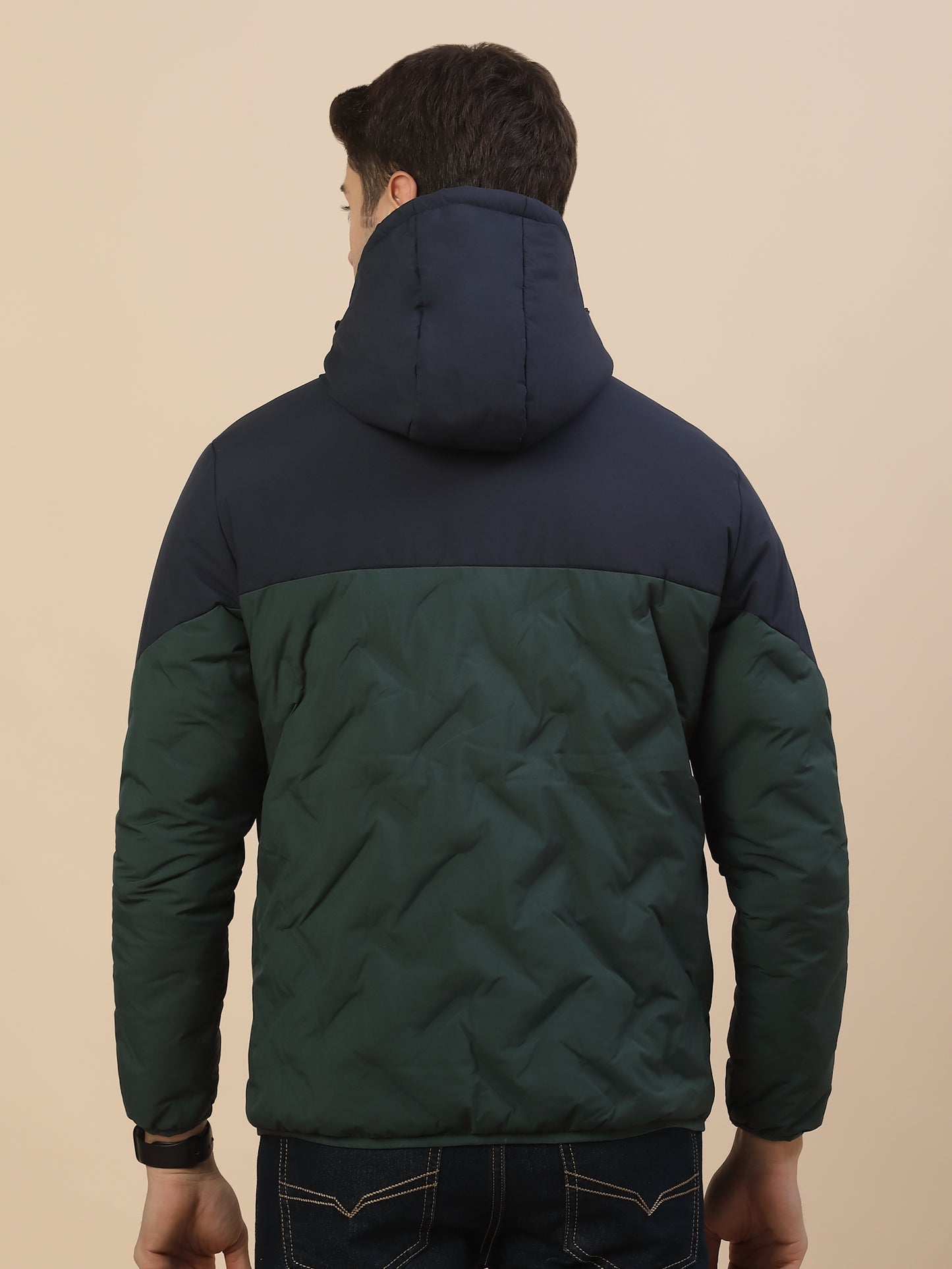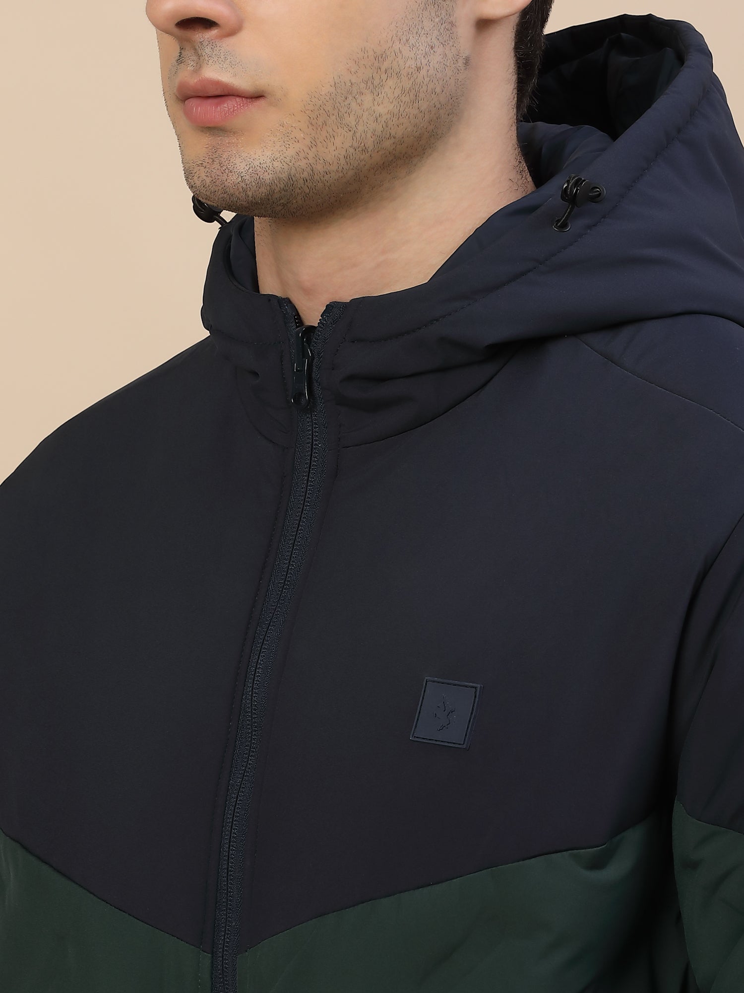 Jacket for Men | Premium Casual Jacket Smart Fit Hooded Poly Blend Fabric Colour Block Pattern