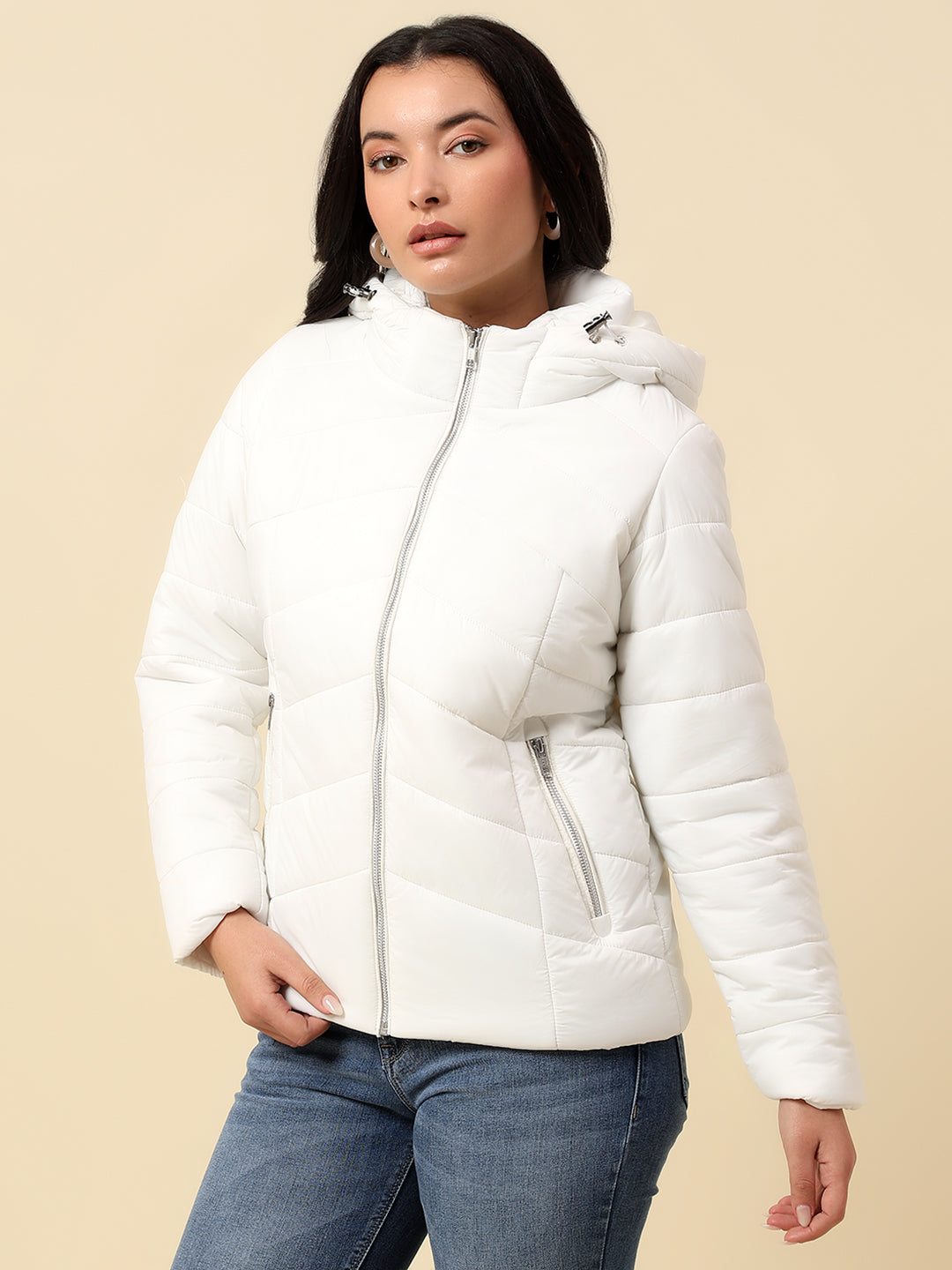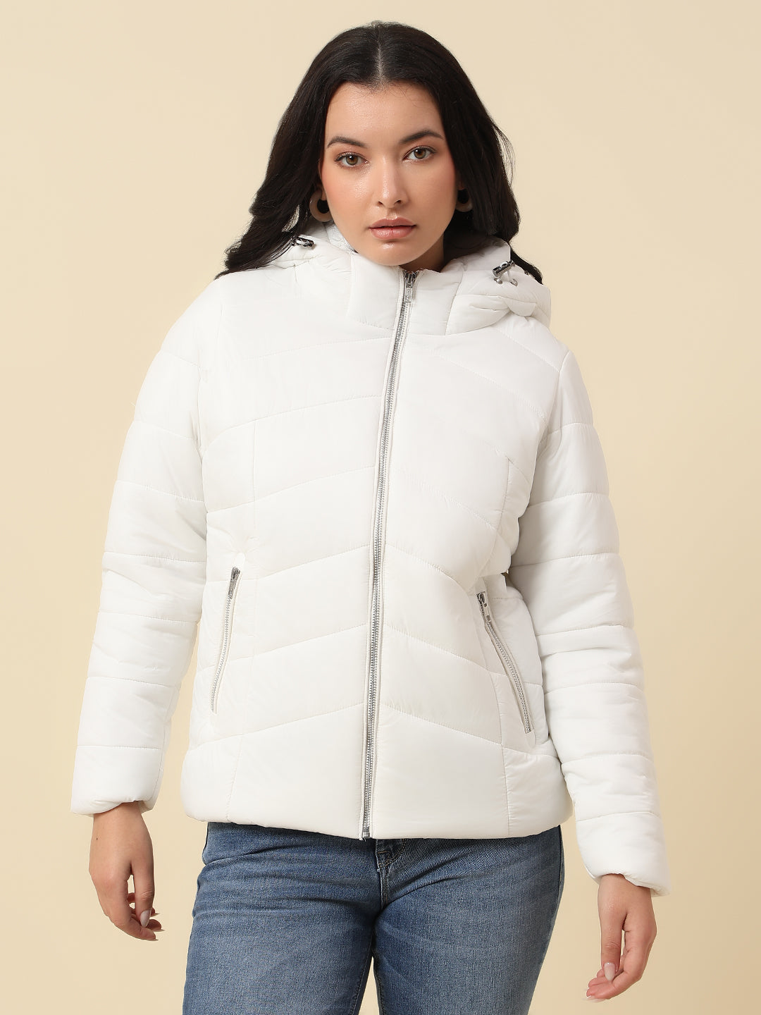Jacket for Women | Premium Casual Jacket Regular Fit Hooded Nylon Fabric Solid Pattern