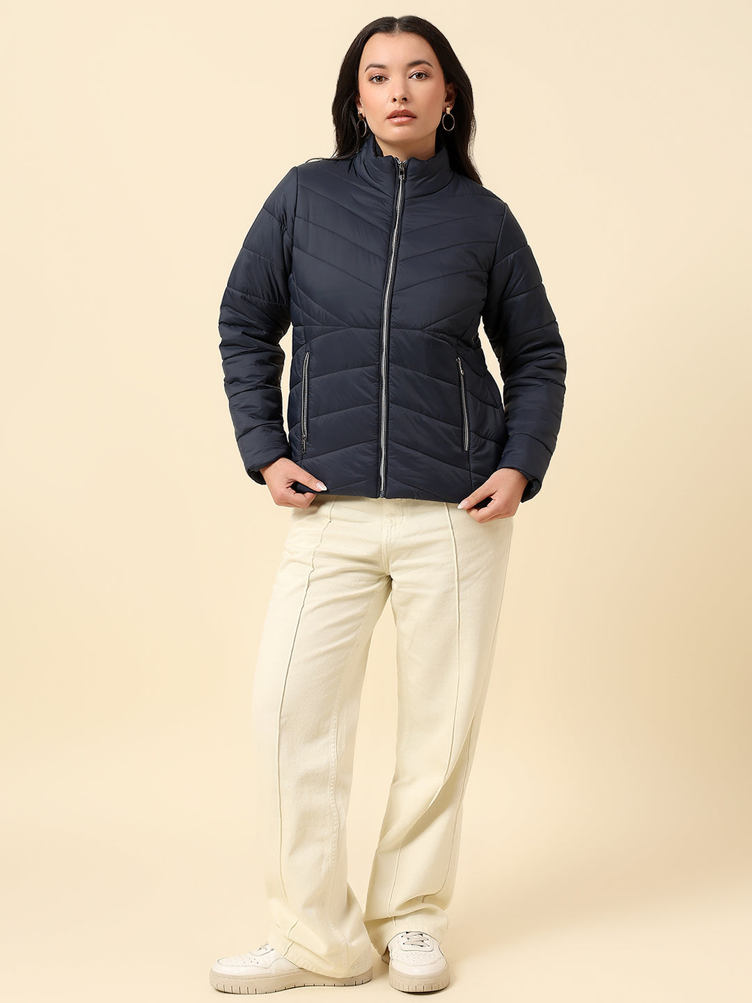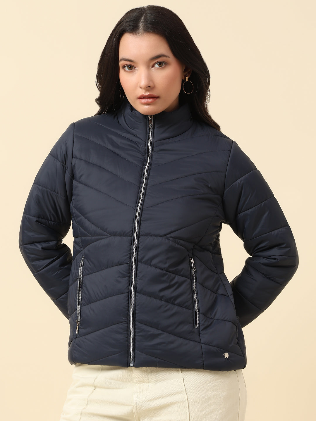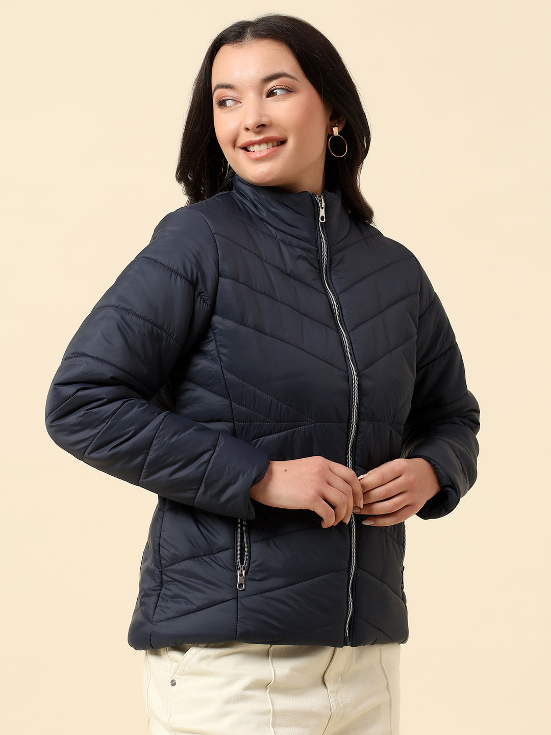 Jacket for Women | Premium Casual Jacket Regular Fit Mock Neck Nylon Fabric Solid Pattern