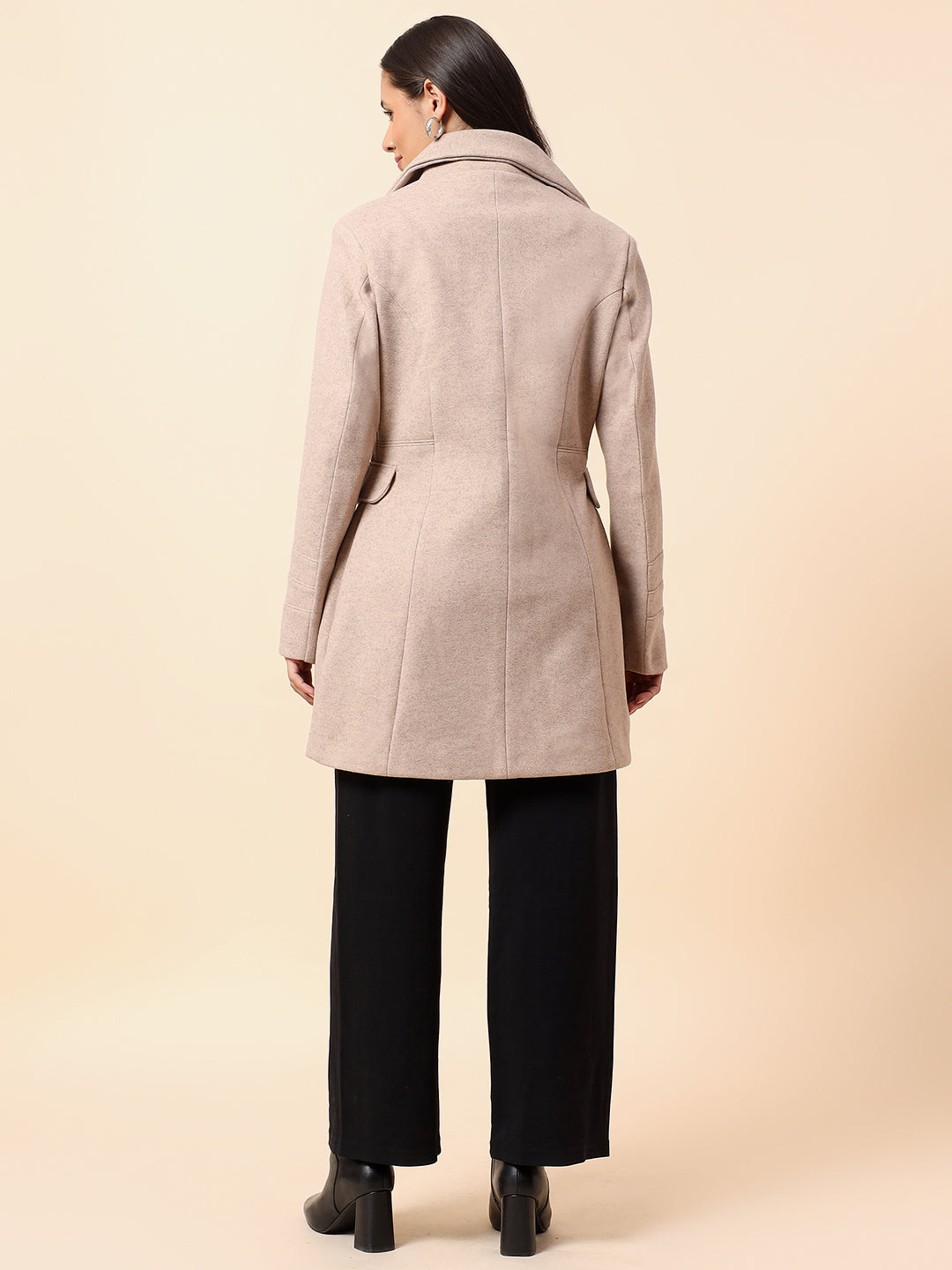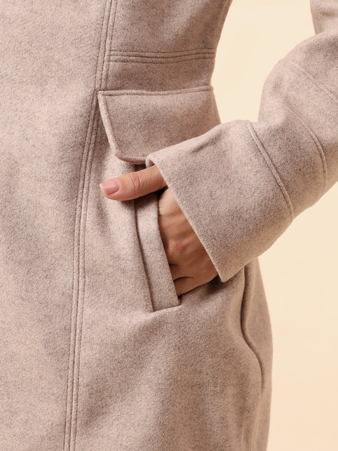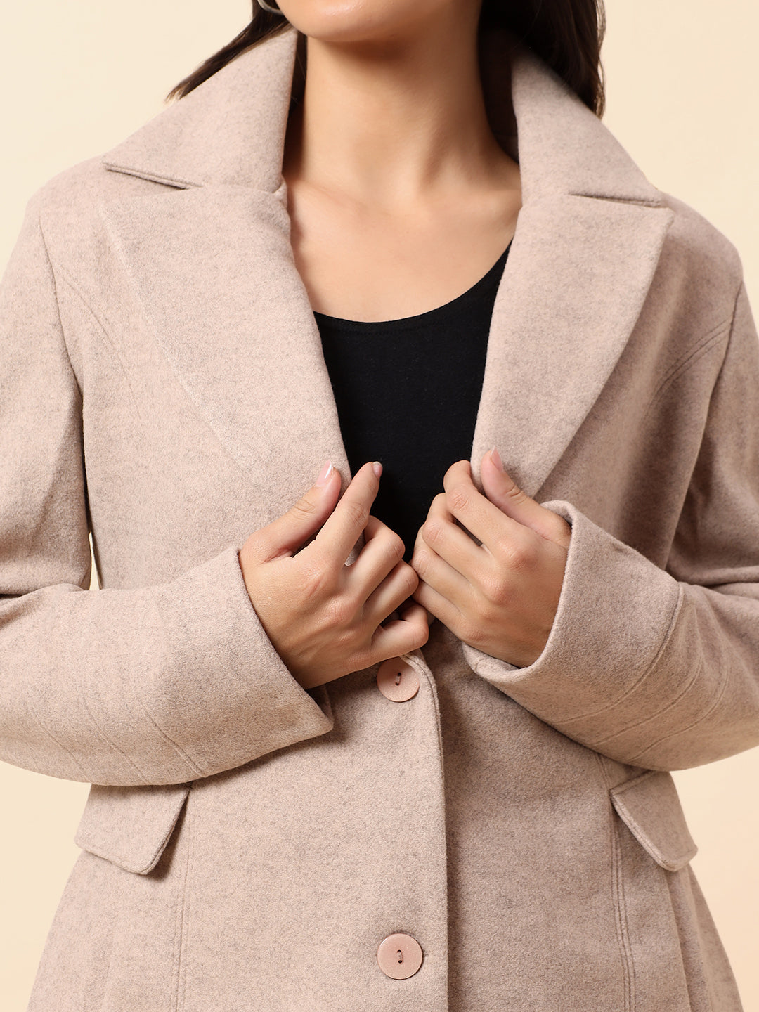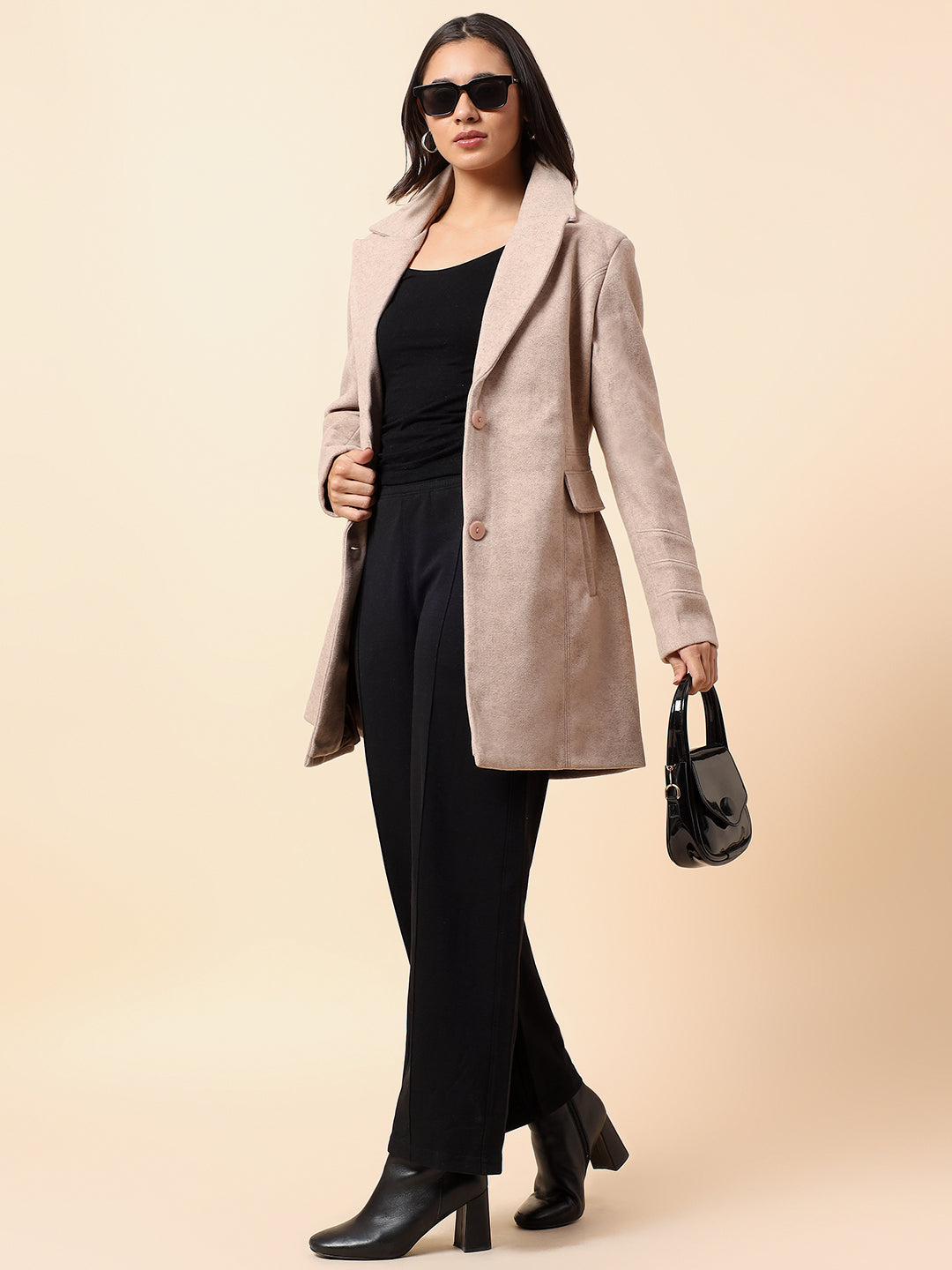 Long Coat for Women l Premium Casual Long Coat Regular Fit Notched Collar Tweed Fabric Solid Pattern