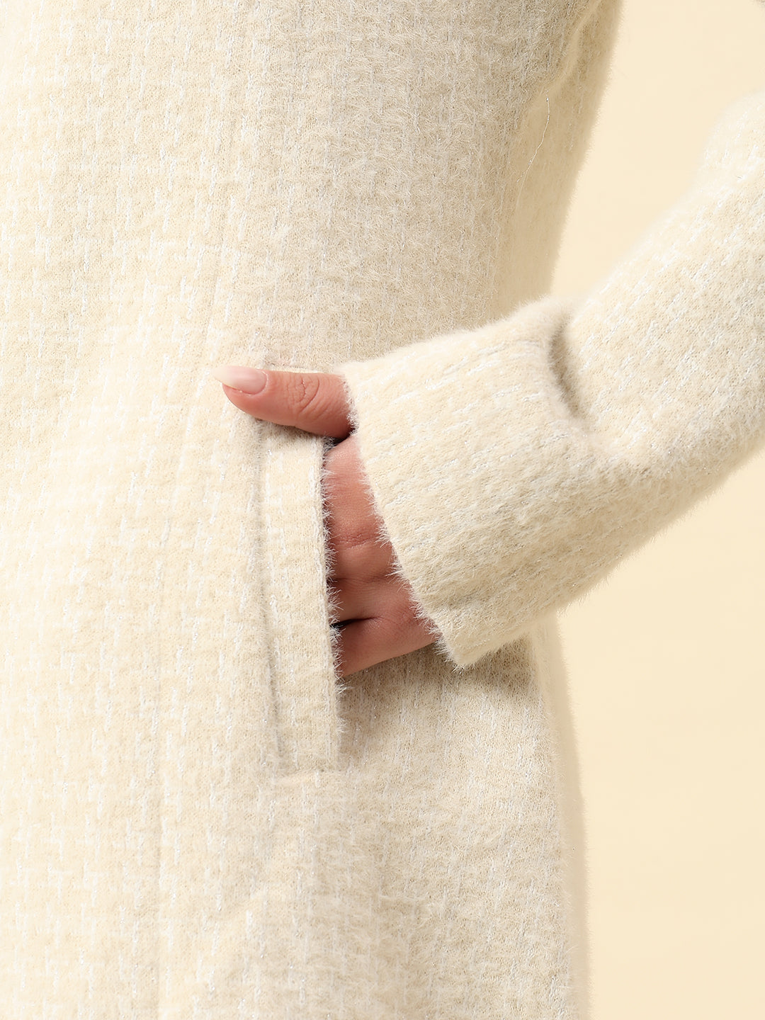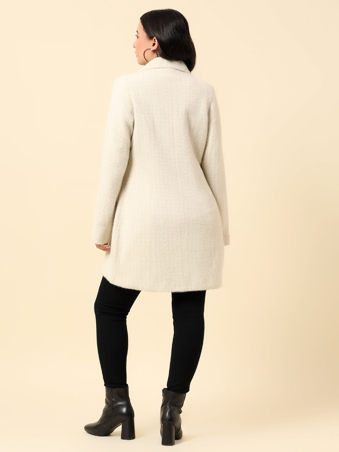 Long Coat for Women | Premium Casual Long Coat Regular Fit Spread Collar Wool Fabric Self Design Pattern