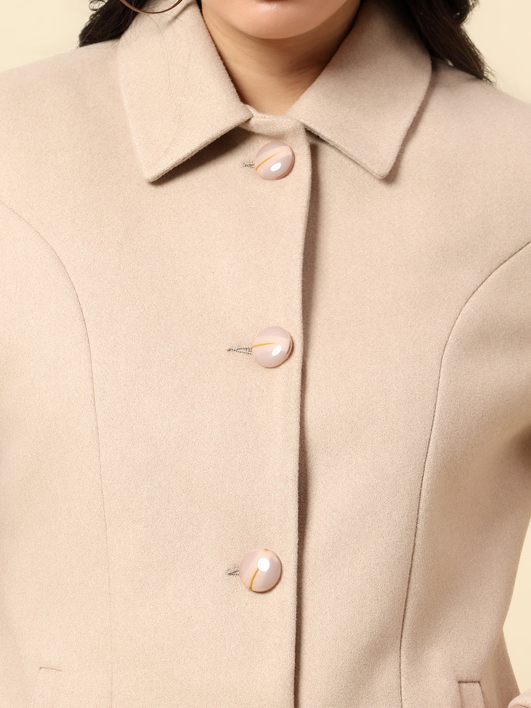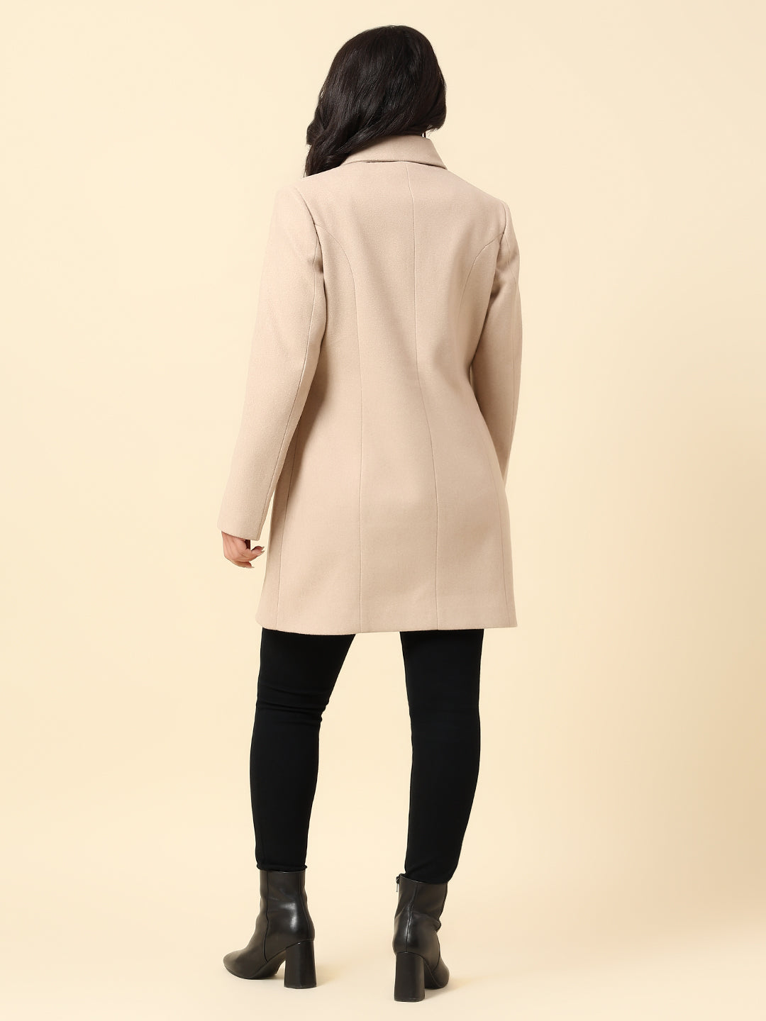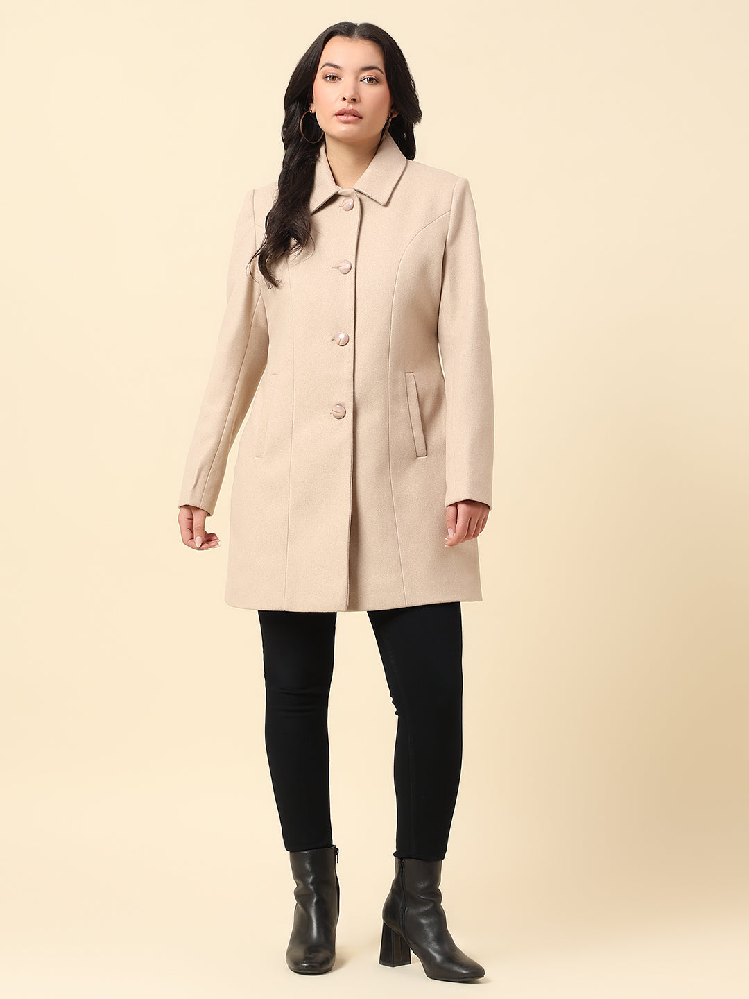 Long Coat for Women | Premium Casual Long Coat Regular Fit Spread Collar Wool Fabric Solid Pattern