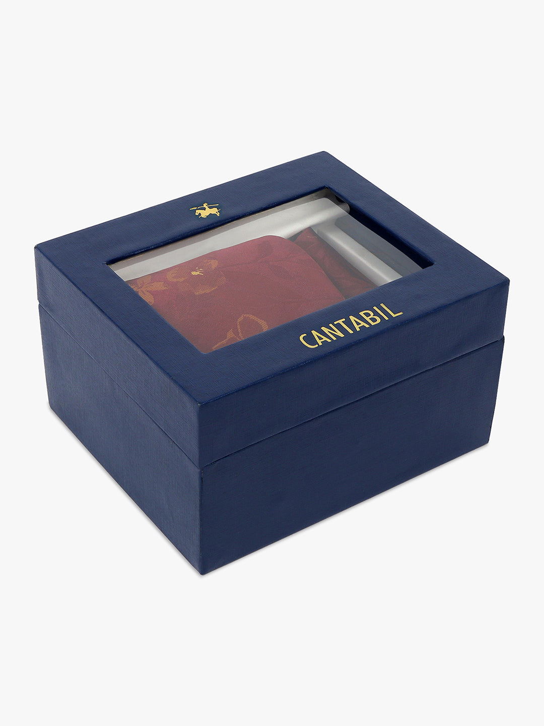 Cantabil Men's Maroon Printed Tie With Pocket Square