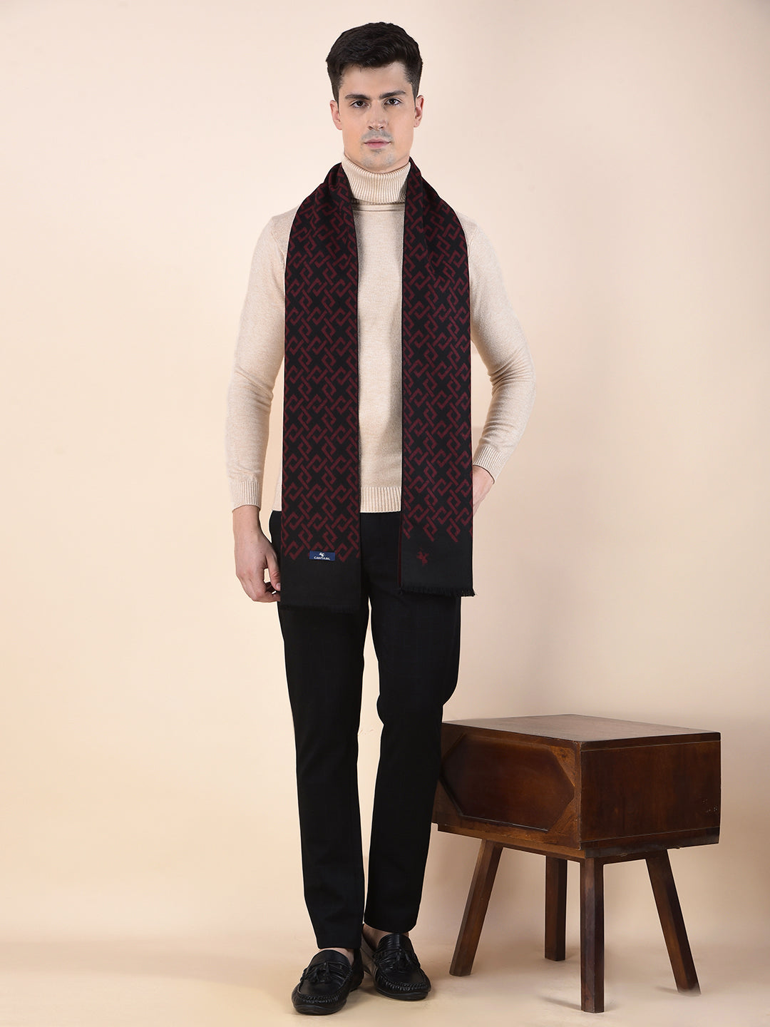 Men Maroon Printed Winter Warm Casual Muffler
