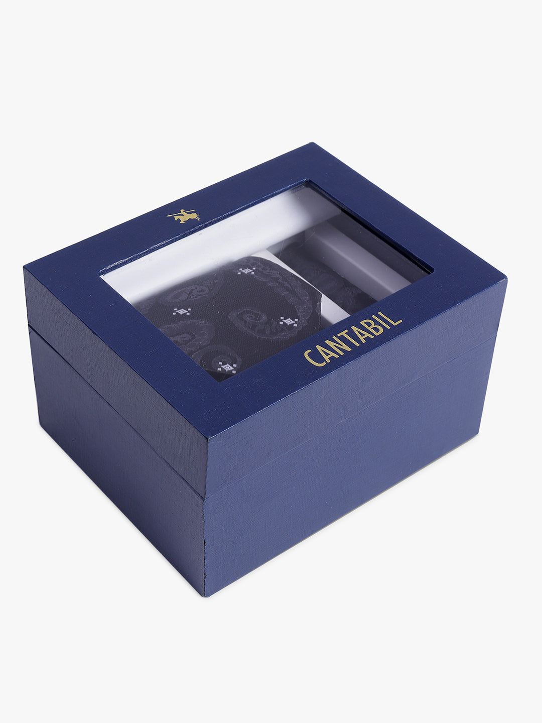 Dress to impress with our Cantabil Men’s Black Self-Design Tie Set. This set includes a stylish tie and matching pocket square for a complete and polished look. Made with high-quality polyester materials, this set is perfect for any formal and party occasion. Elevate your style with confidence and sophistication.
