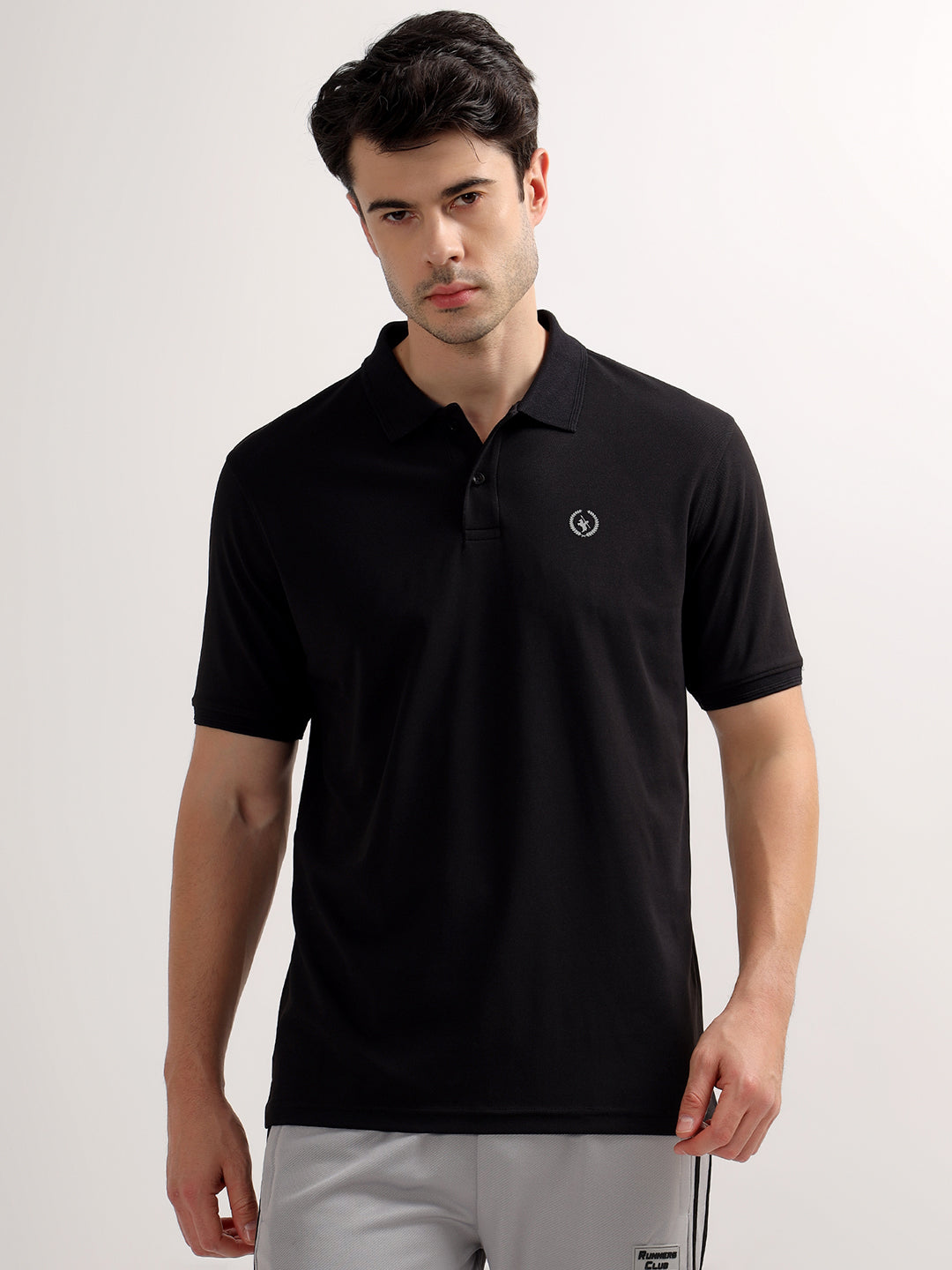 T-Shirt for Men | Breathable & Soft with Color Fastness Regular Fit Polo Neck Polyester Fabric Solid Pattern
