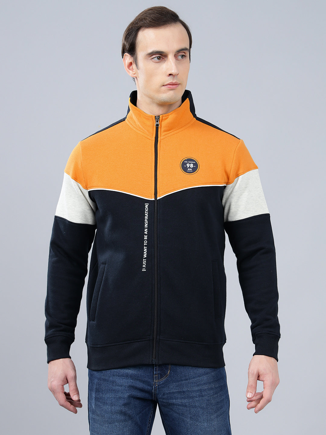 Men's Color Block Navy Blue Mock Collar Sweatshirt