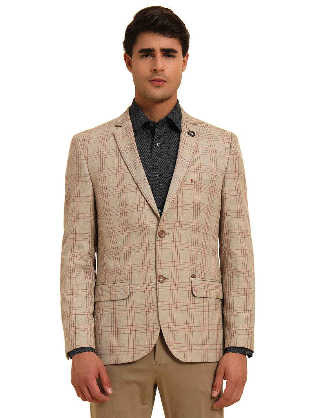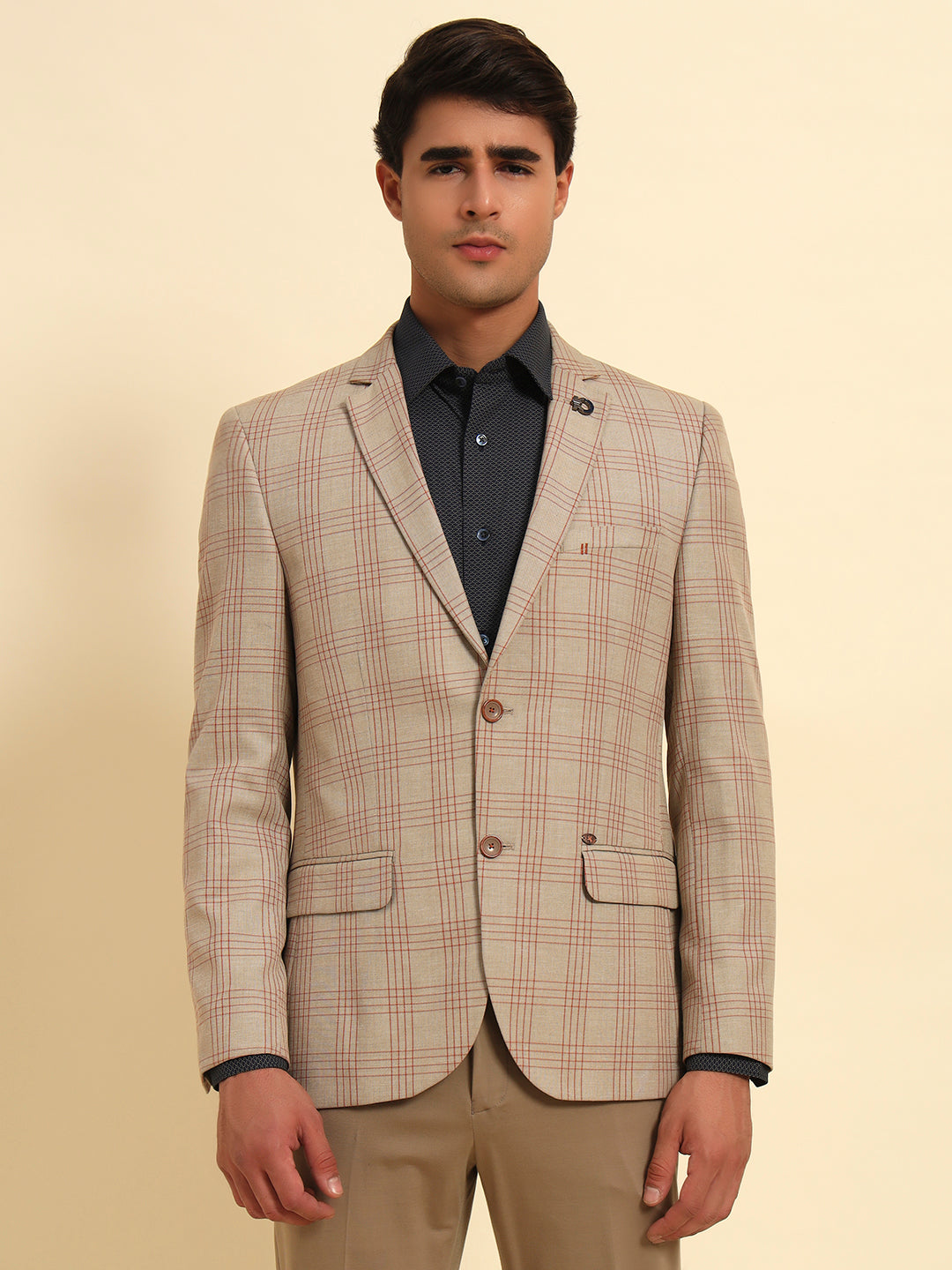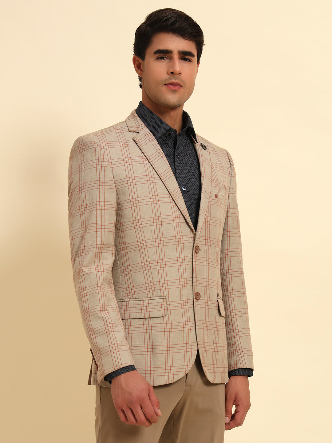 Blazer for Men | Premium Formal Blazer Slim Fit Notched Collar Poly Viscose Fabric Checkered Pattern