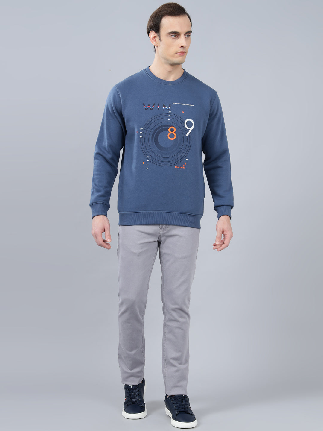Men's Graphic Printed Blue Round Neck Sweatshirt