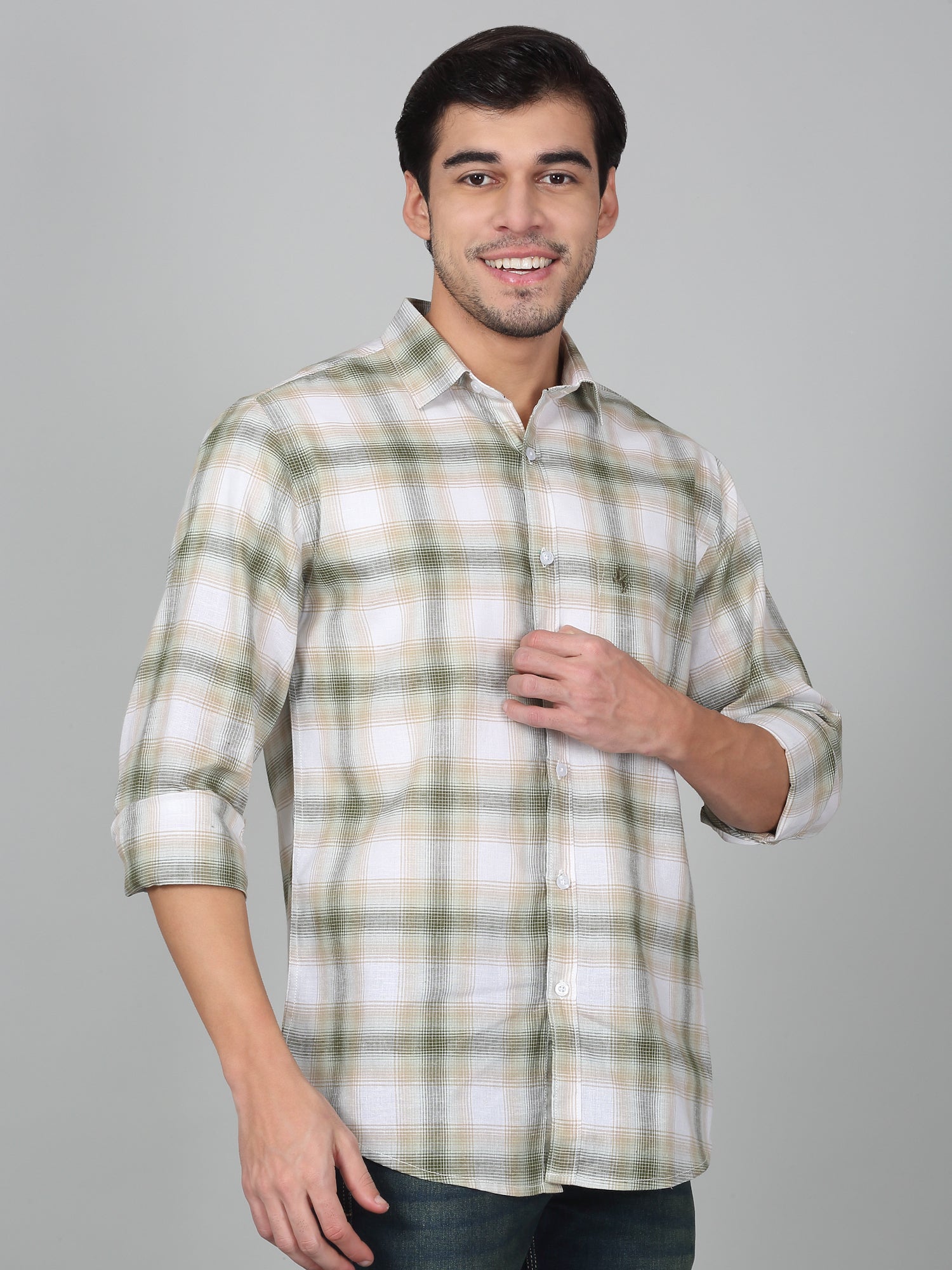 Casual Shirt for Men | Breathable & Soft with Color Fastness Regular Fit Spread Collar Neck Cotton Linen Fabric Checkered Pattern
