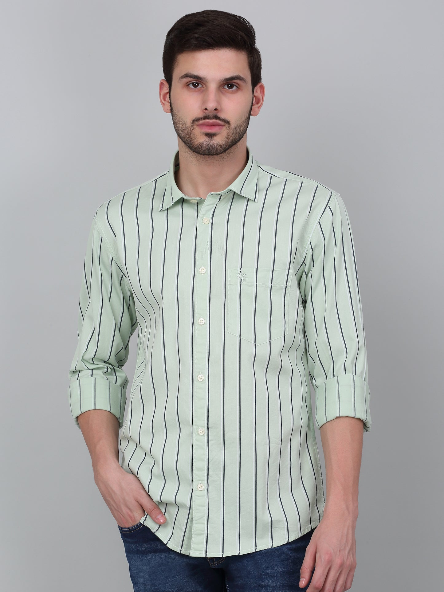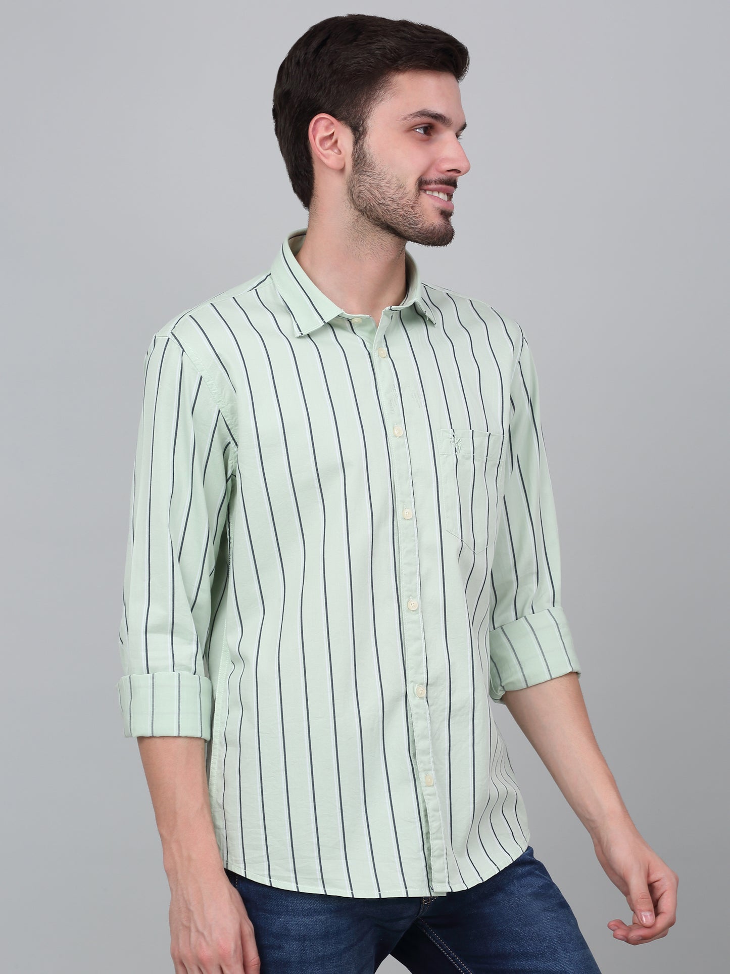 Casual Shirt for Men | Breathable & Soft with Color Fastness Regular Fit Spread Collar Neck Cotton Fabric Striped Pattern