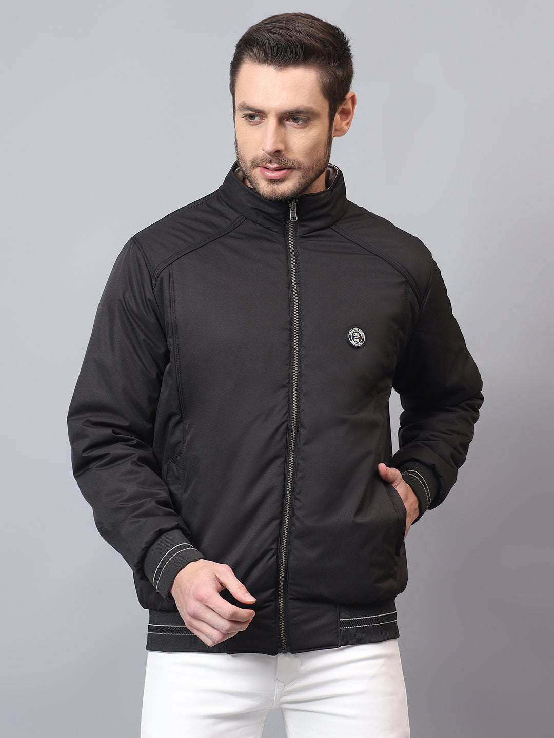 Men's Grey Solid Mock Neck Winter Reversible Jacket
