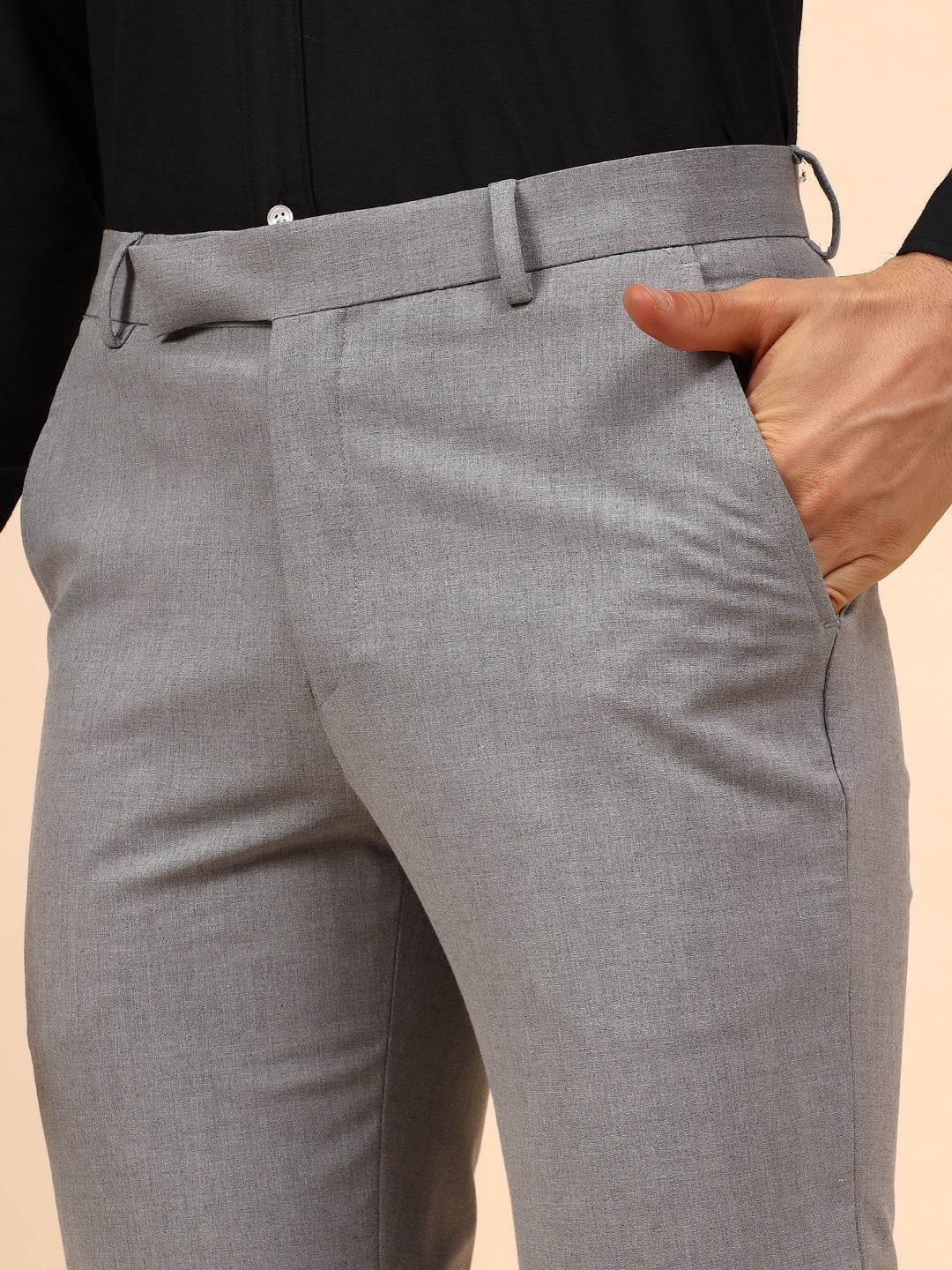 Men's Grey Solid Non Plated Regular Fit Formal Trouser