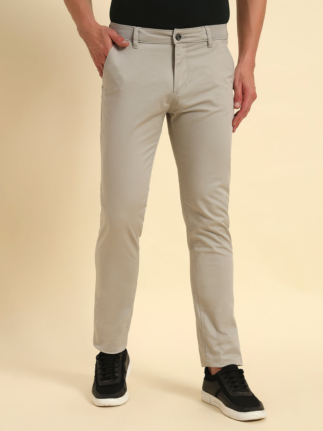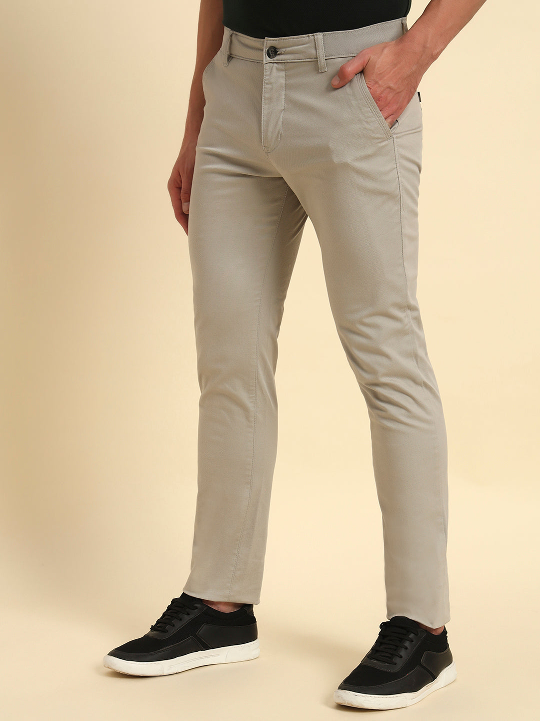 Casual Trouser for Men | Breathable & Soft with Color Fastness Regular Fit Cotton Blend Fabric Self Design Pattern Button Closure