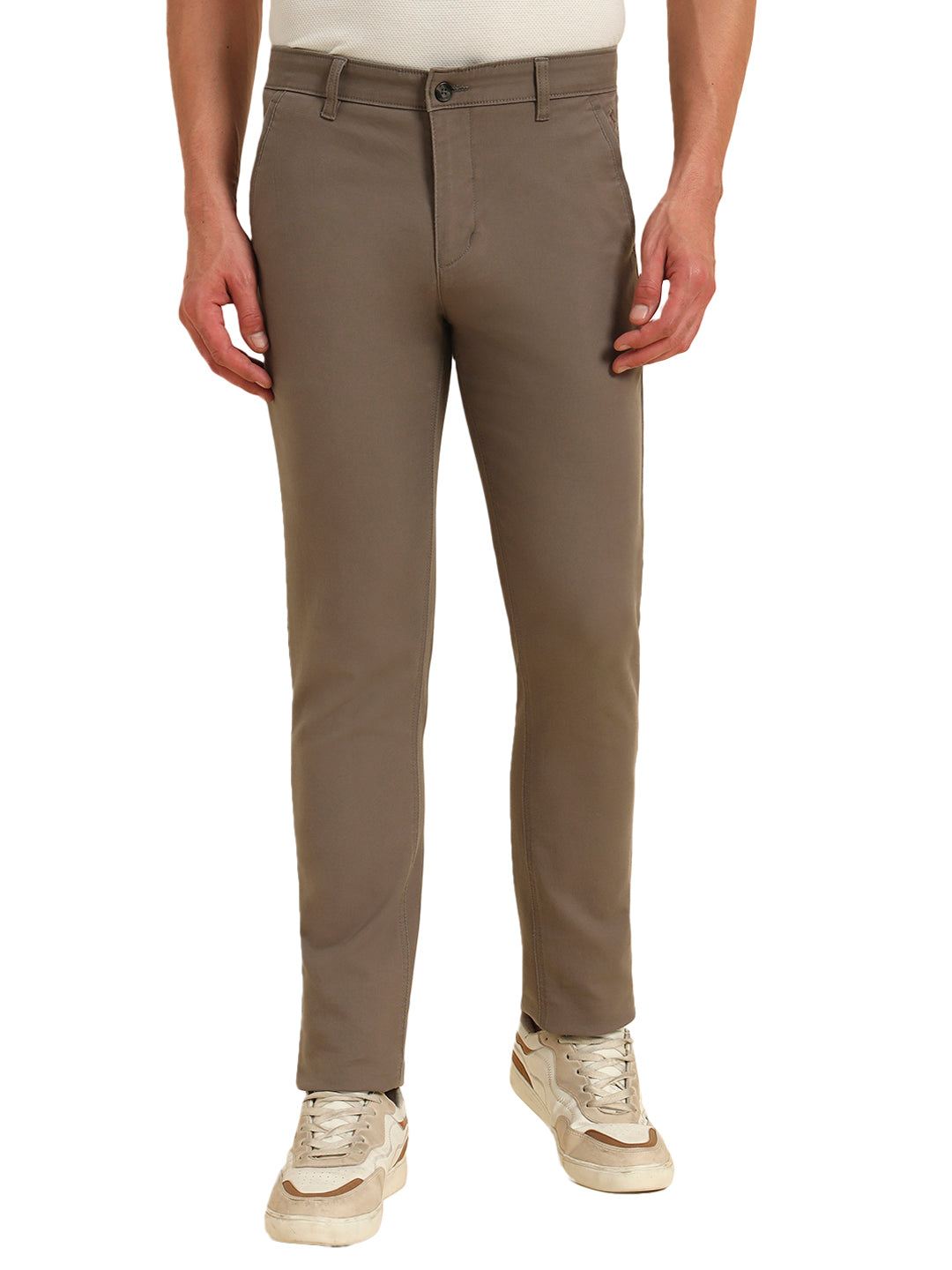 Casual Trouser for Men | Breathable & Soft with Color Fastness Regular Fit Cotton Blend Fabric Solid Pattern Button Closure