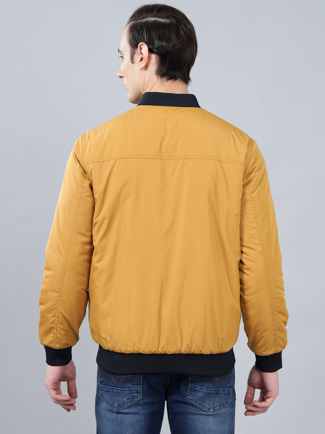 Men's Mustard Solid Mock Neck Reversible Winter Jacket