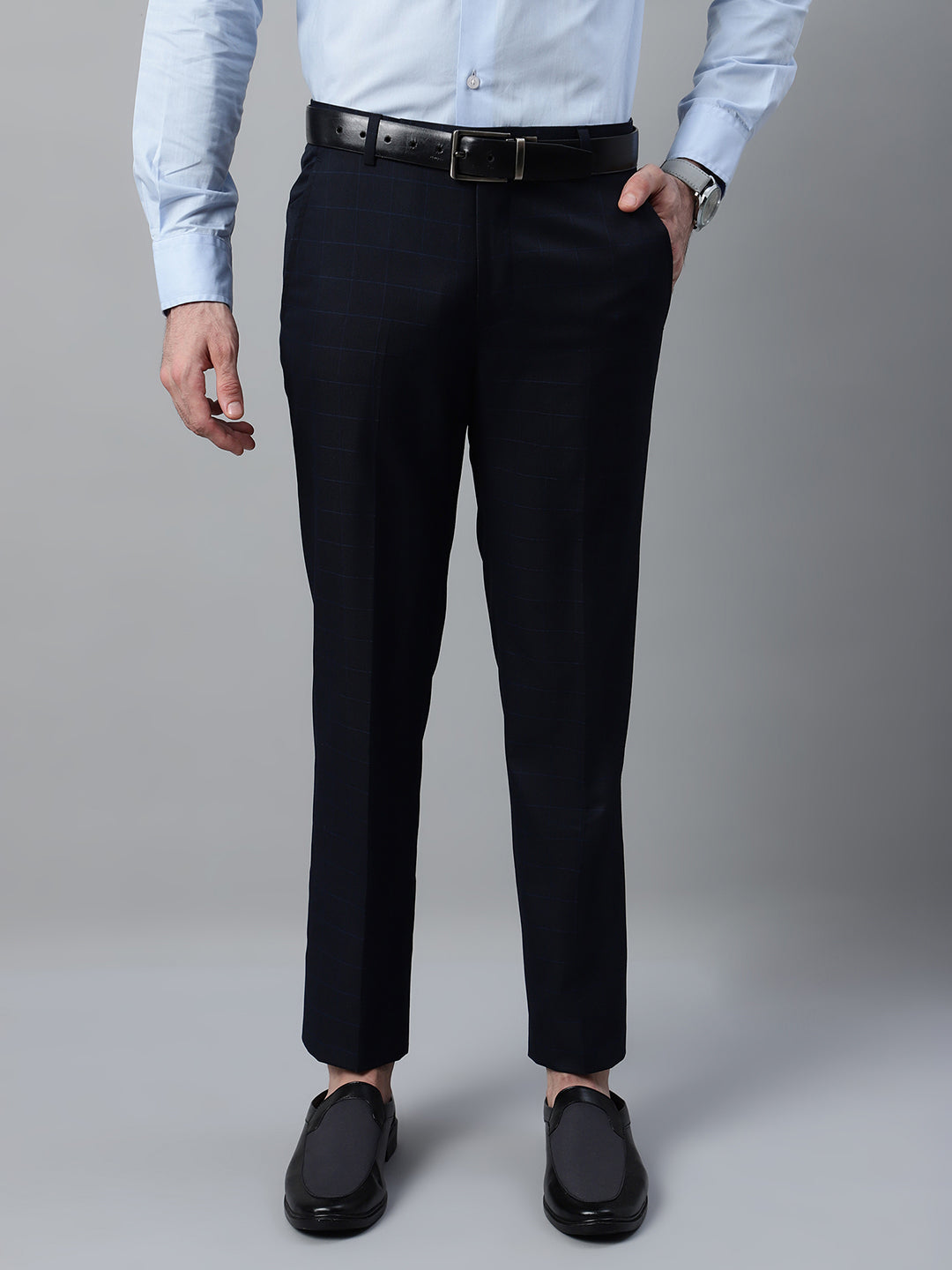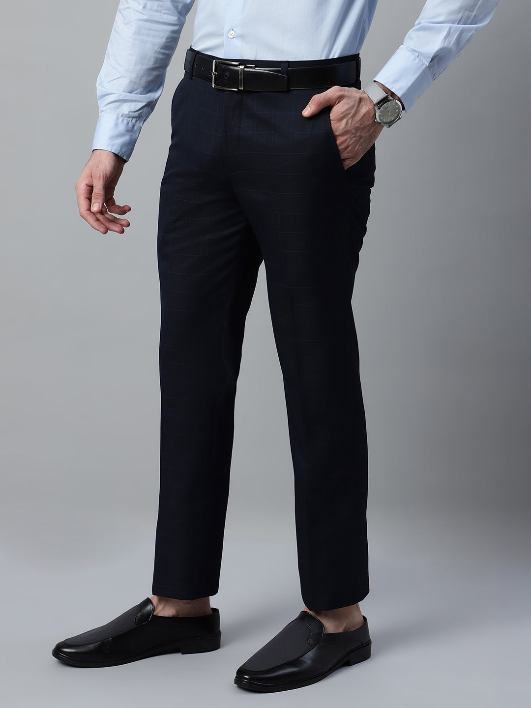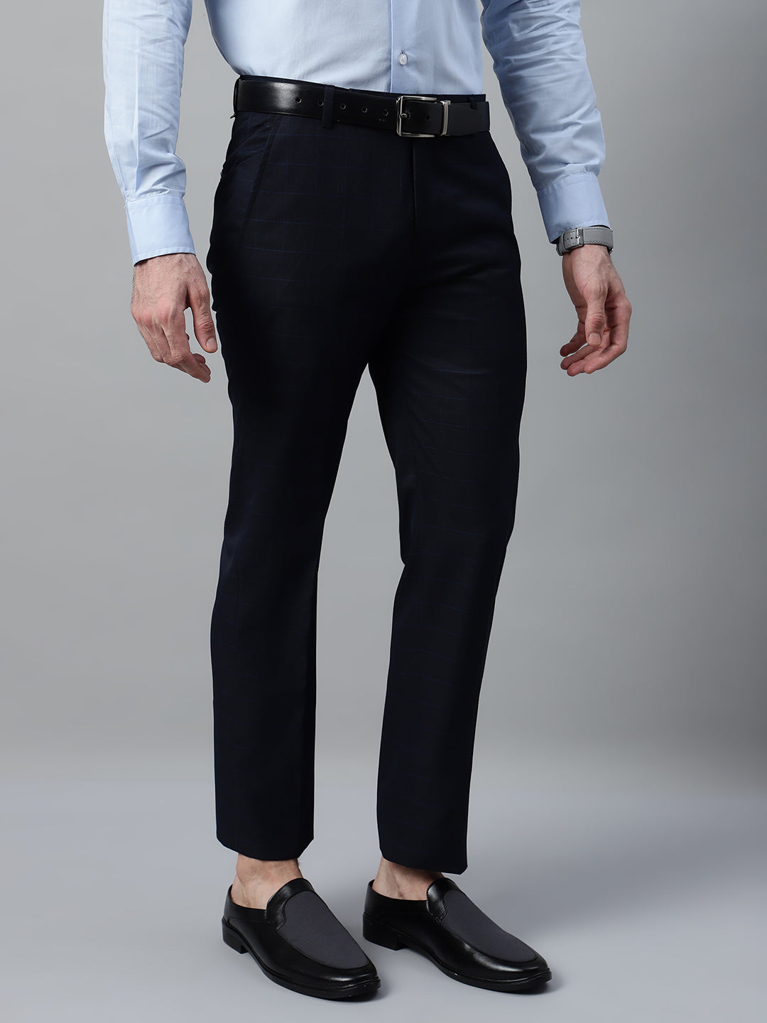 Formal Trouser for Men | Breathable & Soft with Color Fastness Regular Fit Poly Viscose Fabric Checkered Pattern Hook & Eye Closure