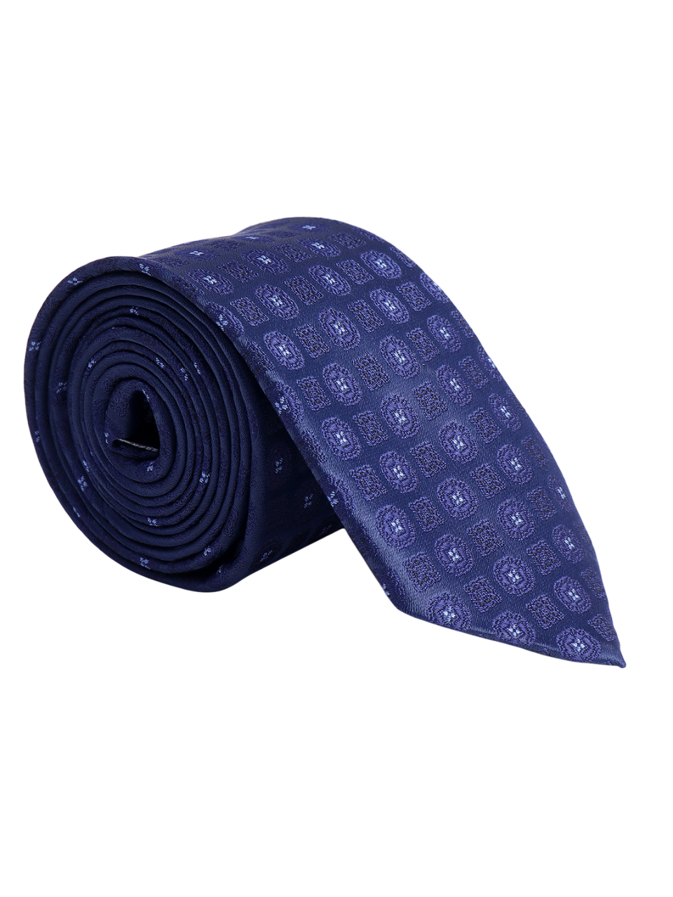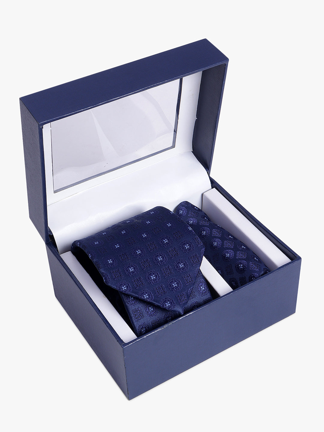 Men's Navy Blue Printed Tie With Pocket Square Set