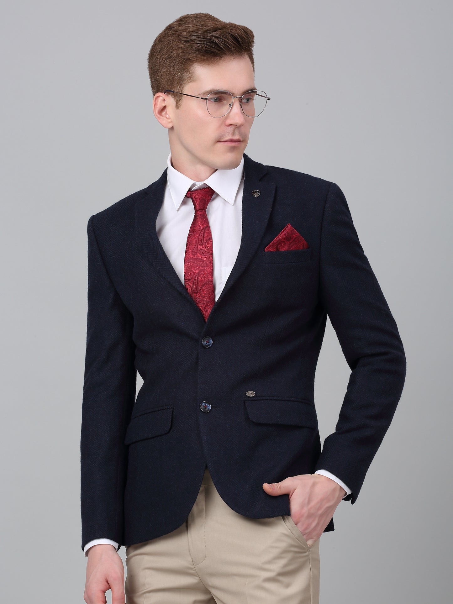 Premium Material & Expertly Tailored: Fabric – Wool Blend | Fit – Smart Fit | Pattern – Self Design