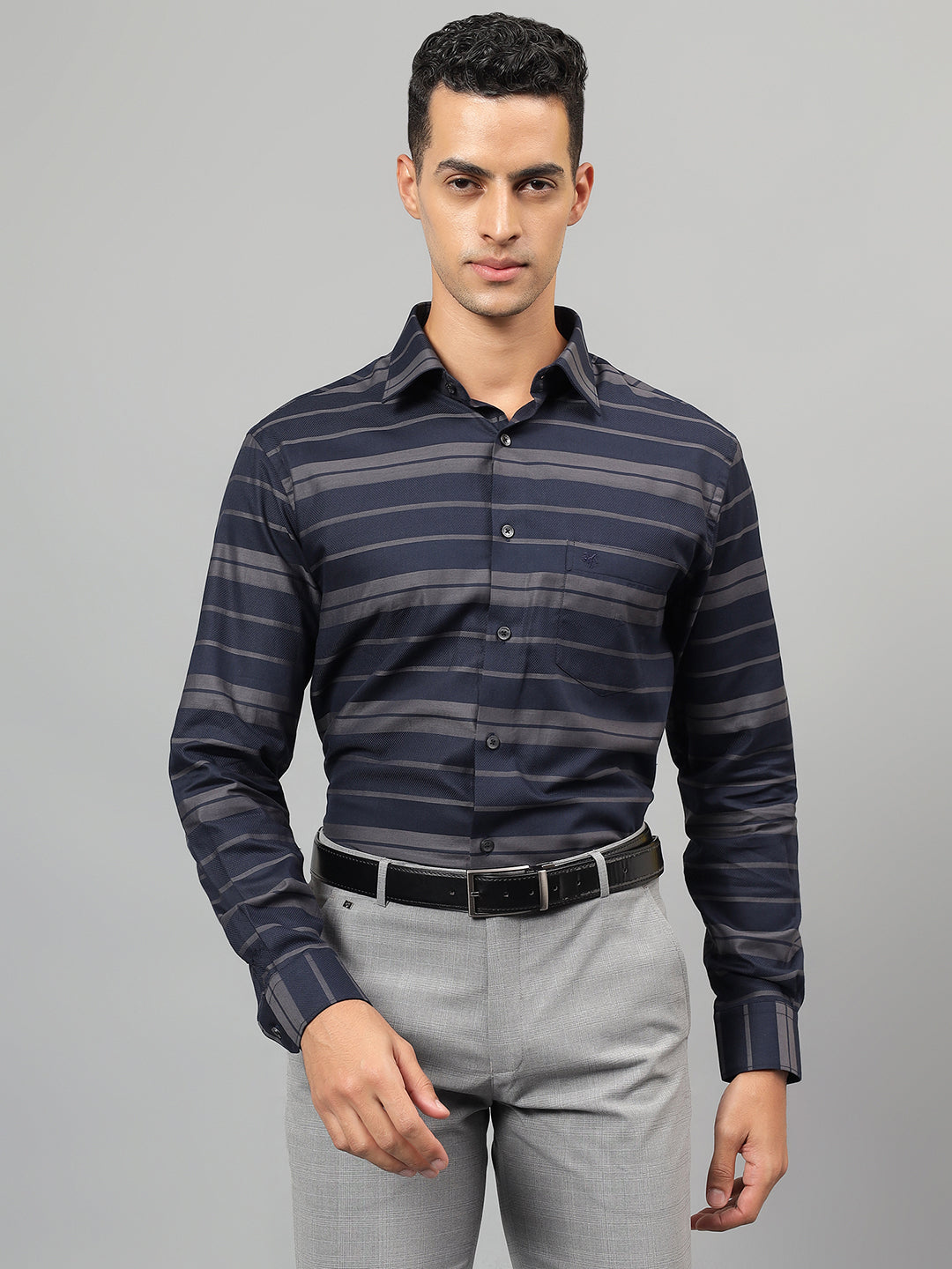 Formal Shirt for Men l Breathable & Soft with Color Fastness Regular Fit Spread Collar Neck Cotton Fabric Striped Pattern