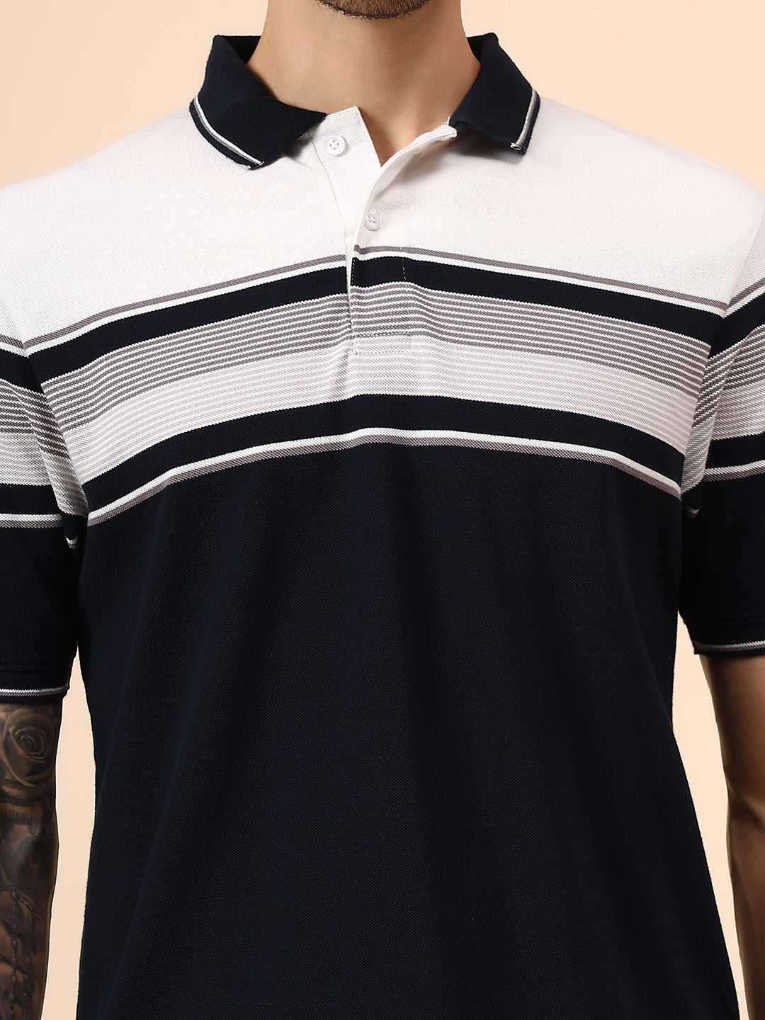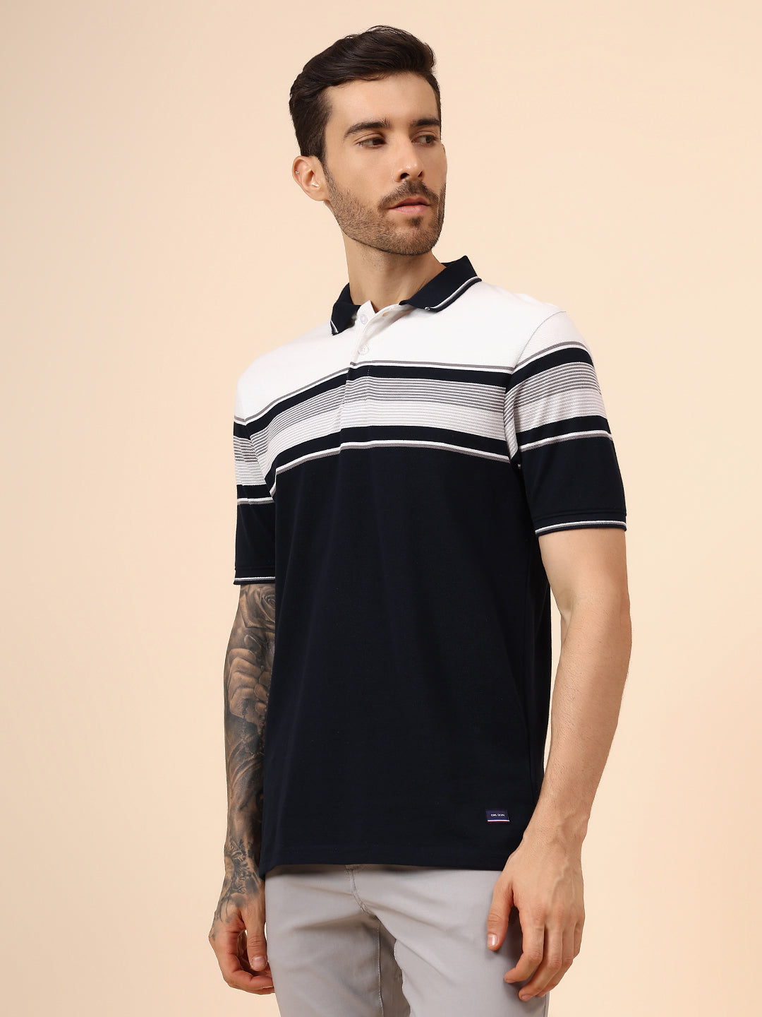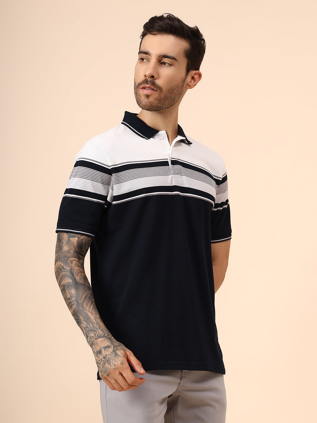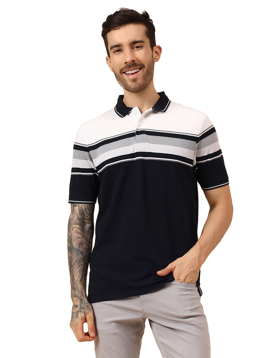 T-Shirt for Men | Breathable & Soft with Color Fastness Regular Fit Polo Neck Poly Cotton Fabric Striped Pattern