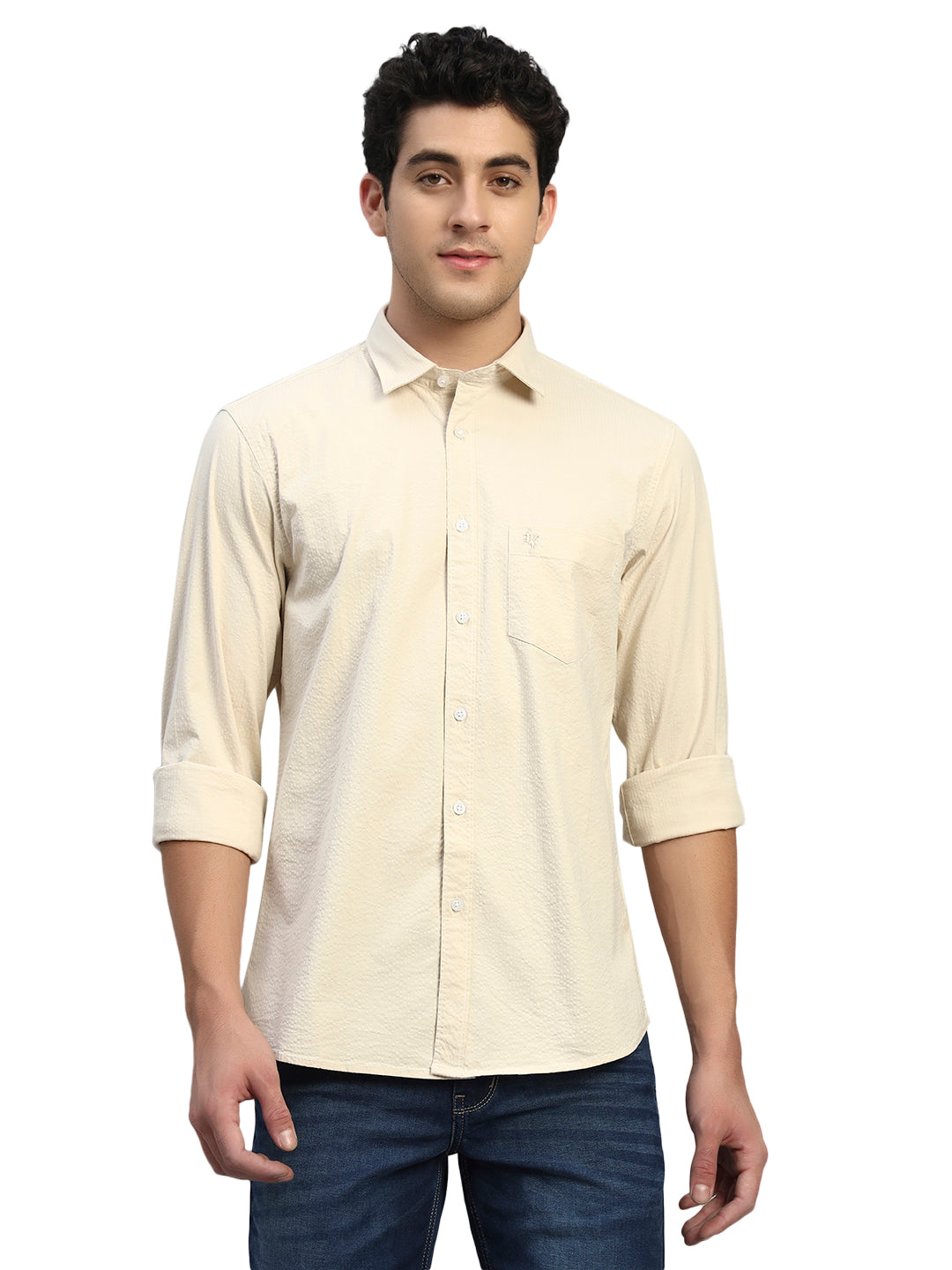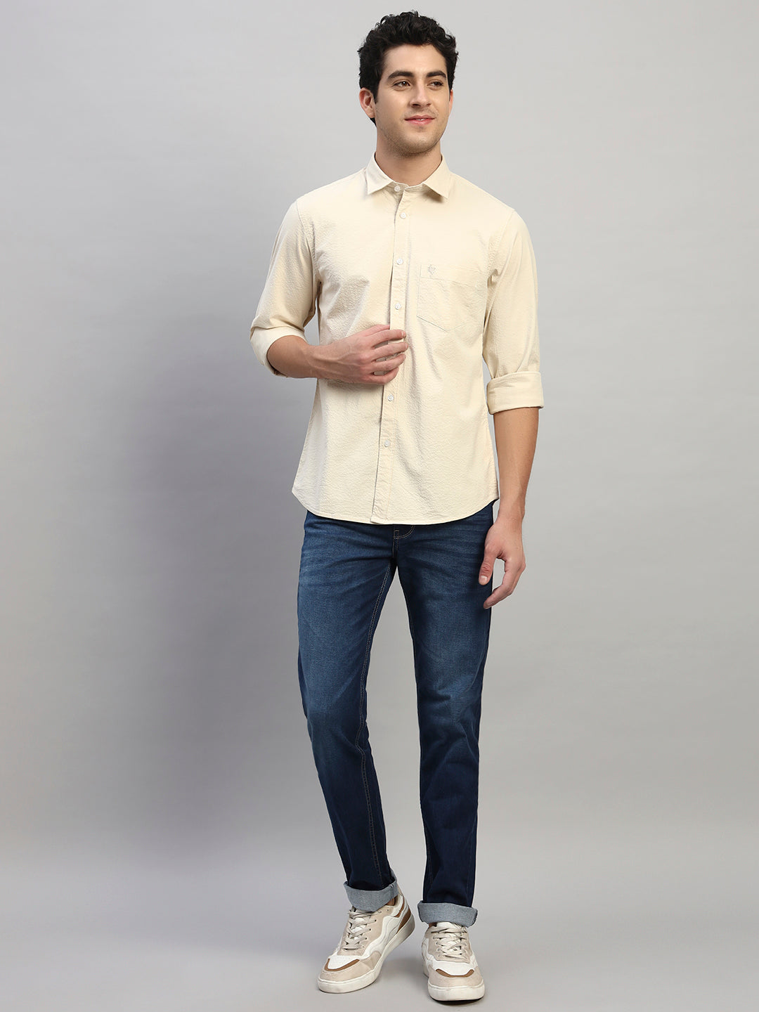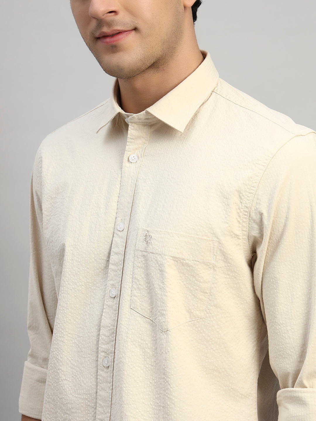 Casual Shirt for Men | Breathable & Soft with Color Fastness Regular Fit Spread Collar Neck Cotton Fabric Self Design Pattern