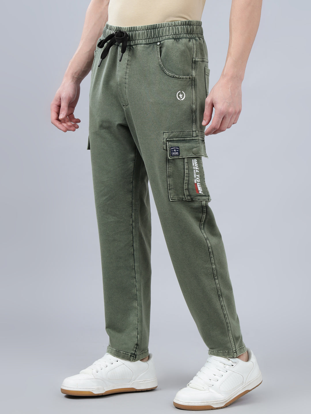Men's Olive Green Solid Full Length Winter Cargo Pant