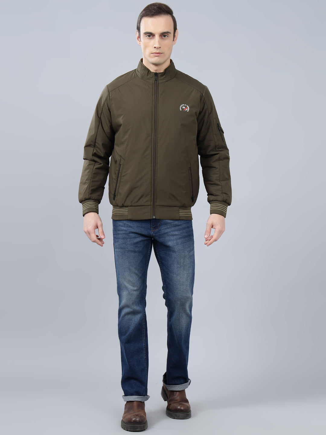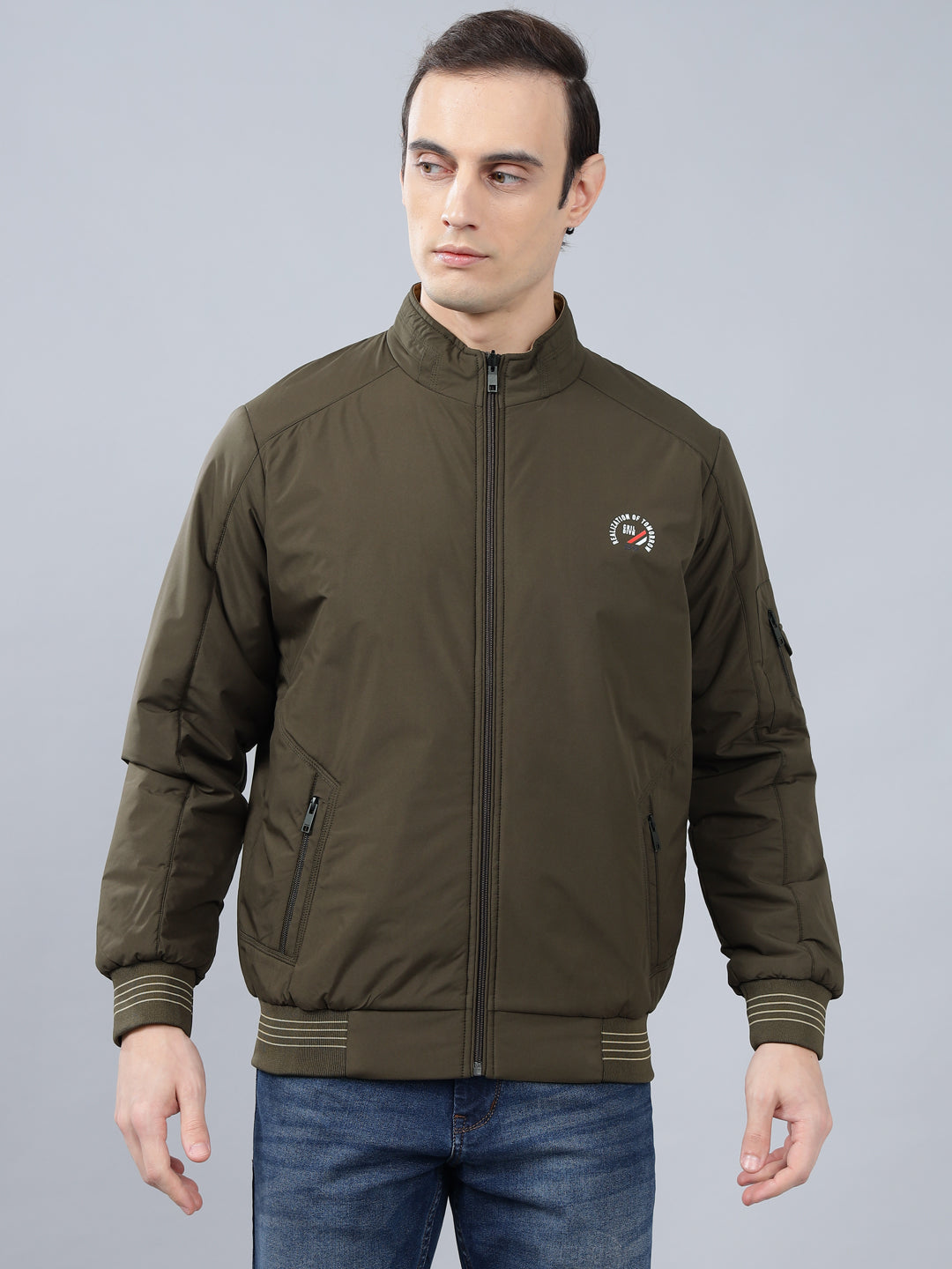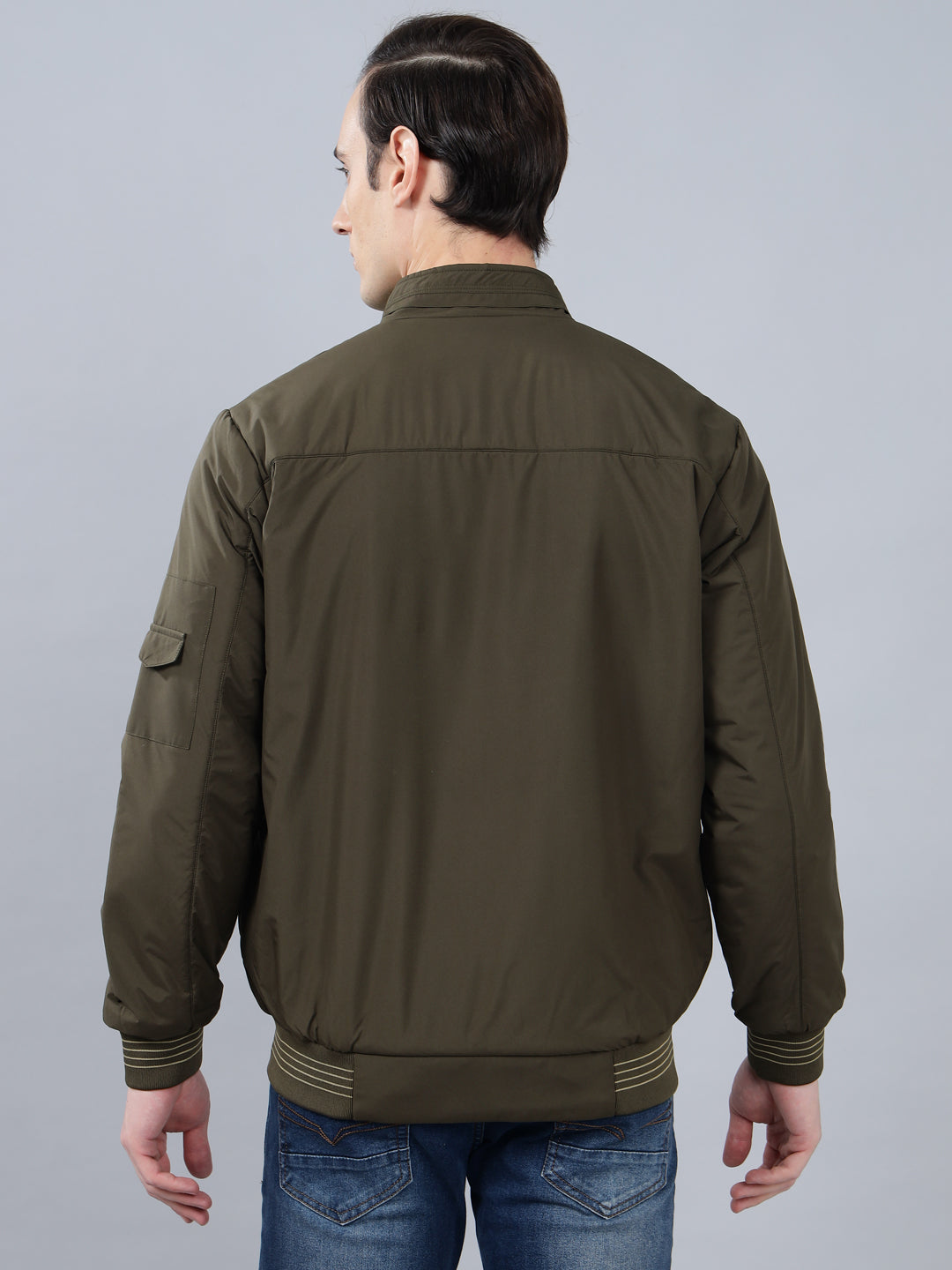 Men's Olive Green Solid Mock Neck Reversible Winter Jacket