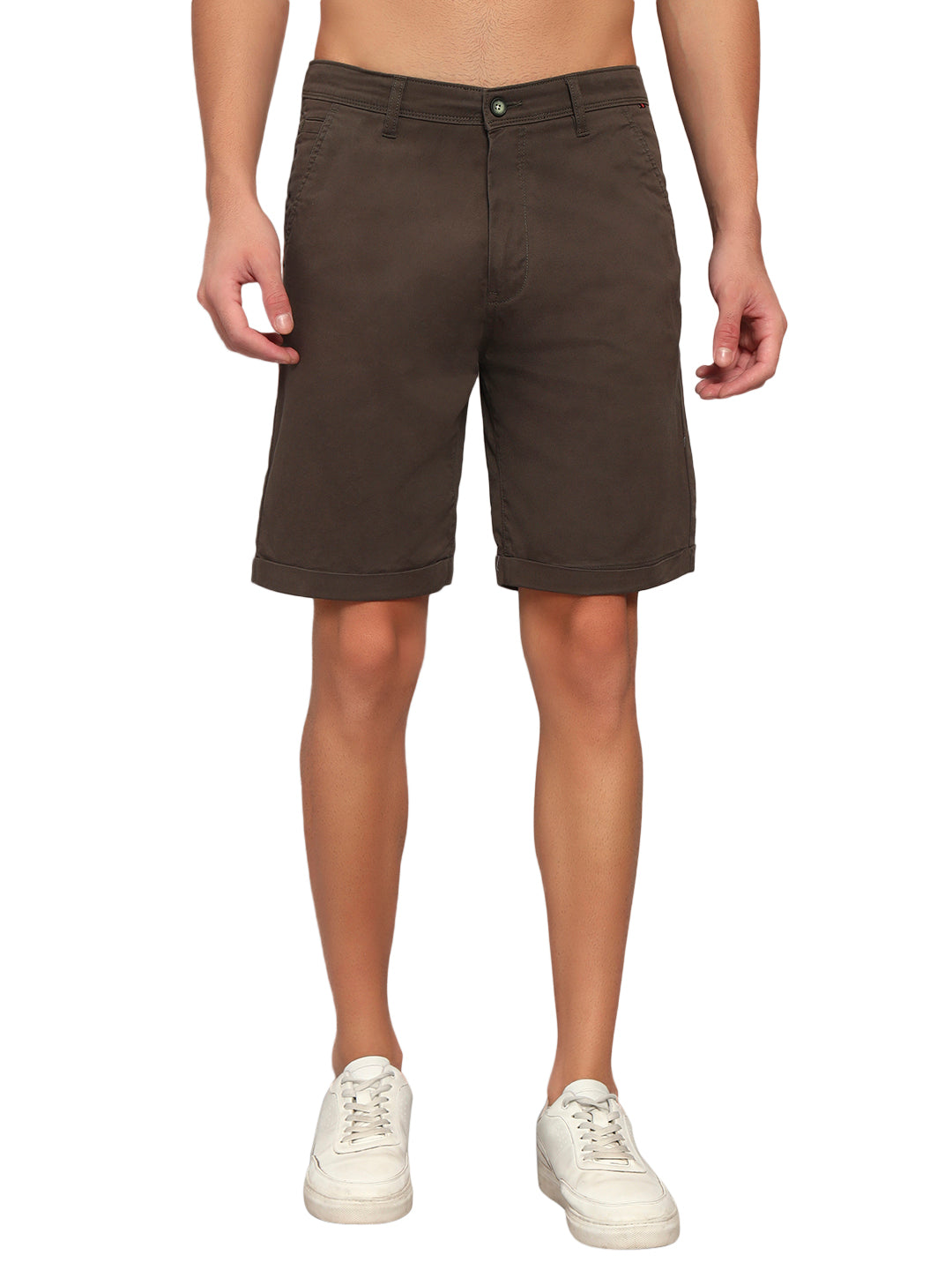 Men's Olive Green Solid Regular Fit Casual Bermuda