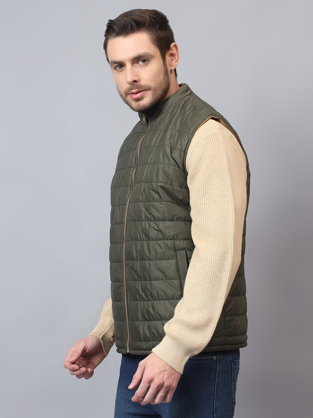 Men's Olive Solid Mock Neck Winter Reversible Jacket
