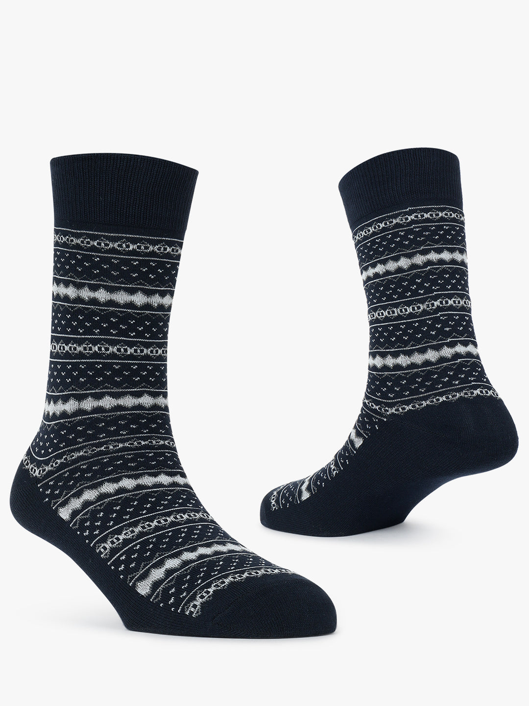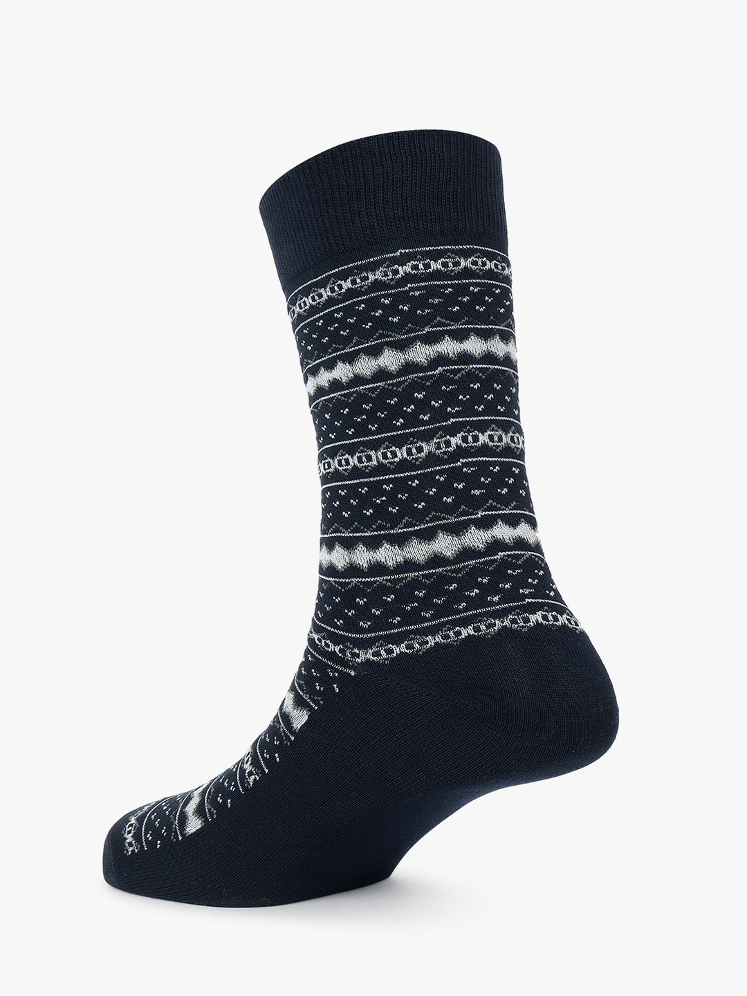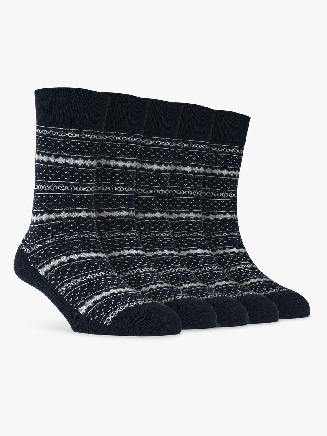 Men's Pack Of 5 Navy Blue Crew Length Printed Casual Socks