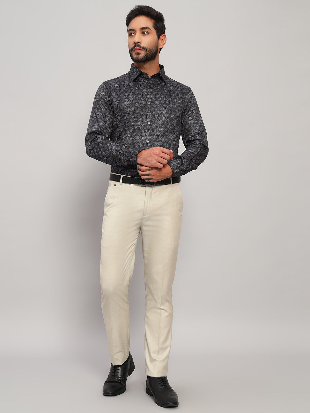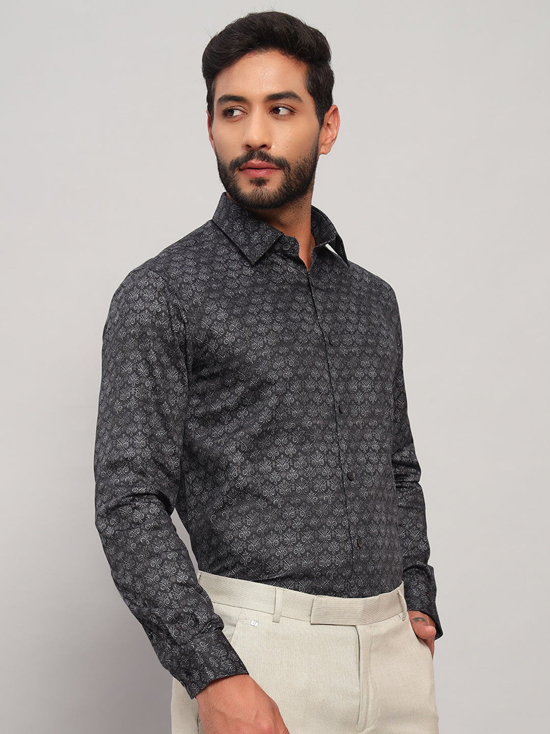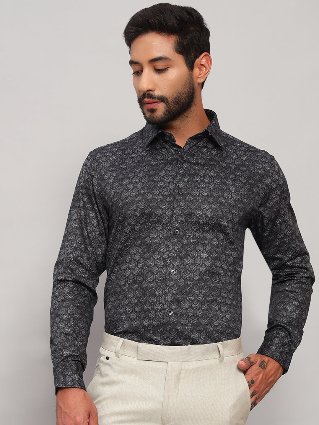 Formal Shirt for Men l Breathable & Soft with Color Fastness Regular Fit Spread Collar Neck Cotton Fabric Printed Pattern