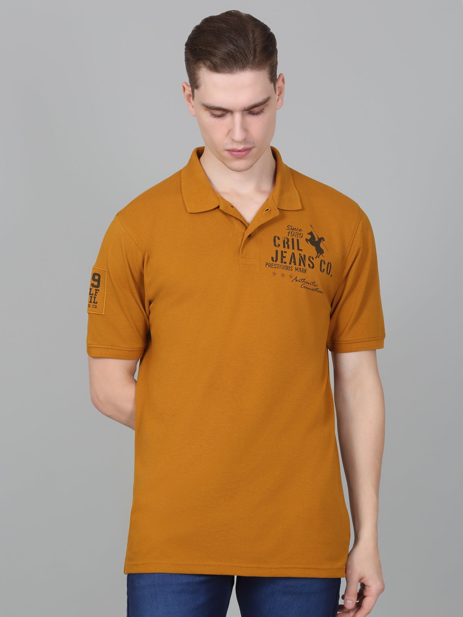 T-Shirt for Men | Breathable & Soft with Color Fastness Regular Fit Polo Neck Poly Cotton Fabric Printed Pattern