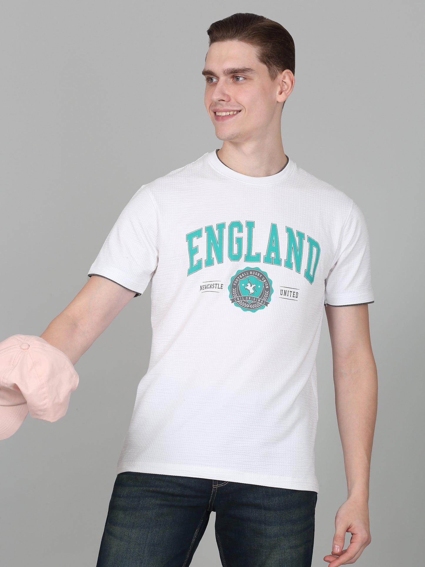 T-Shirt for Men | Breathable & Soft with Color Fastness Regular Fit Round Neck Poly Cotton Fabric Printed Pattern