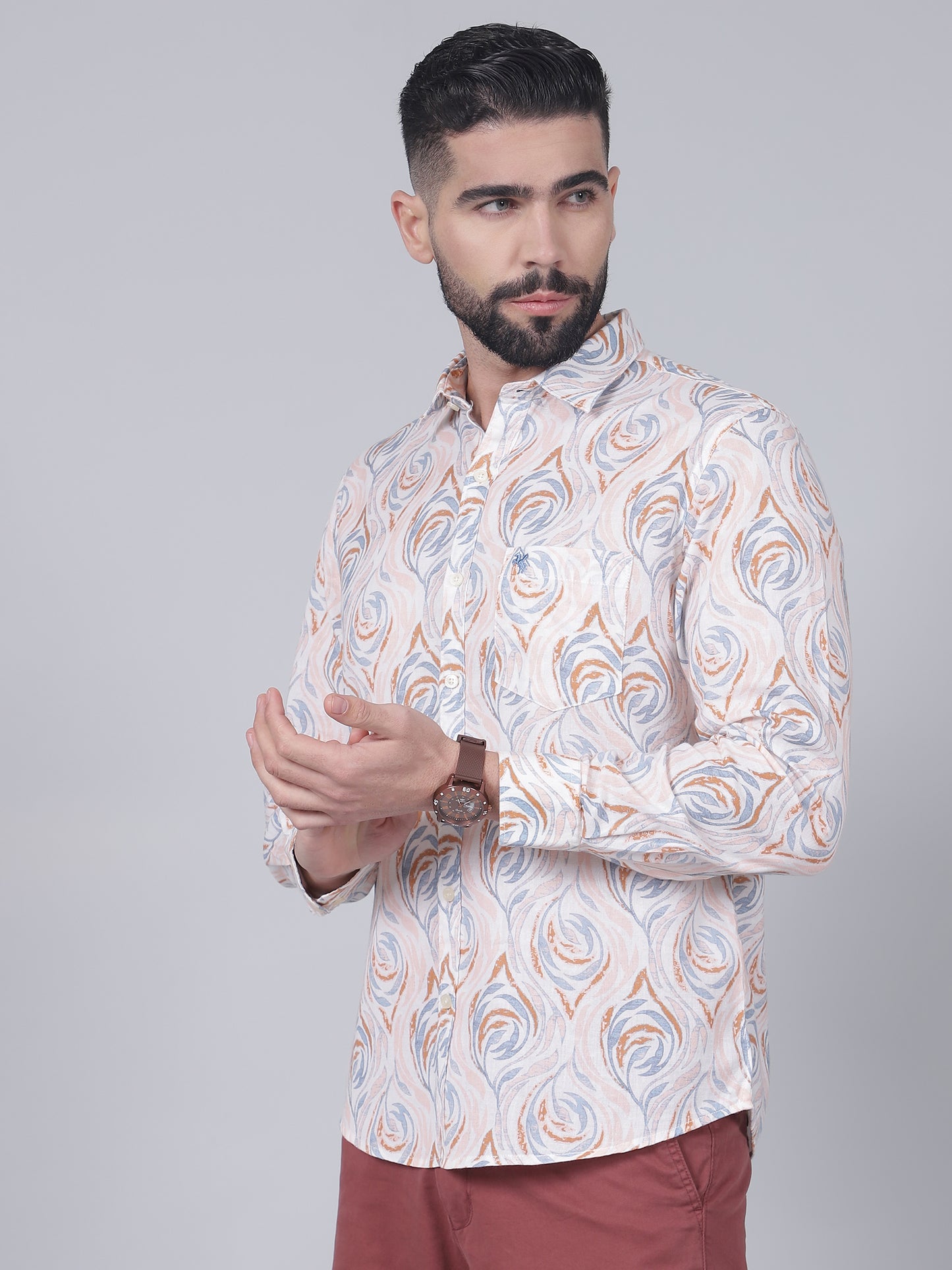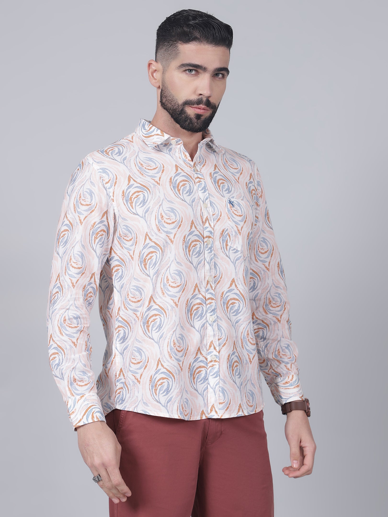 Casual Shirt for Men | Breathable & Soft with Color Fastness Regular Fit Spread Collar Neck Cotton Fabric Printed Pattern