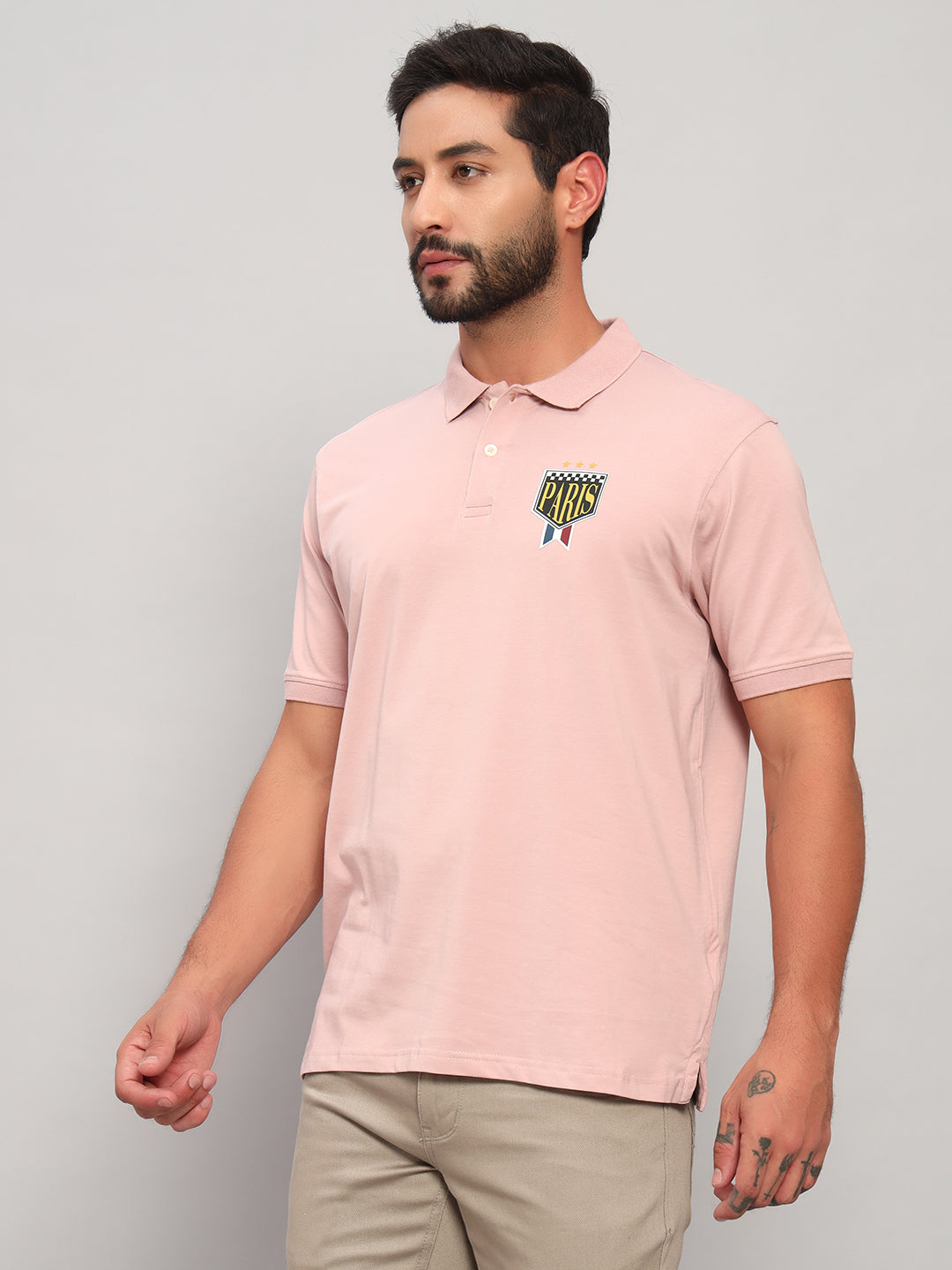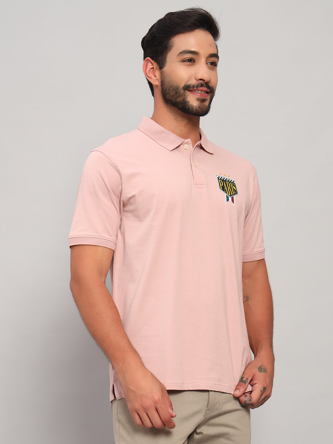 T-Shirt for Men | Breathable & Soft with Color Fastness Regular Fit Polo Neck Cotton Blend Fabric Solid Pattern