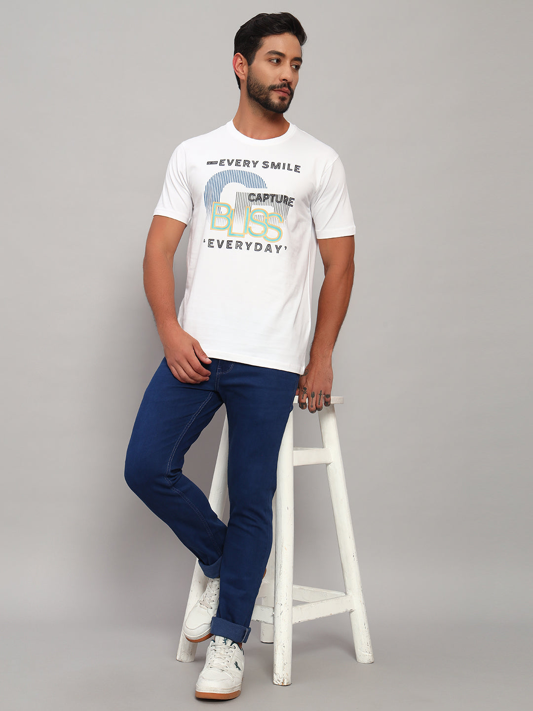 T-Shirt for Men | Breathable & Soft with Color Fastness Regular Fit Round Neck Cotton Blend Fabric Printed Pattern