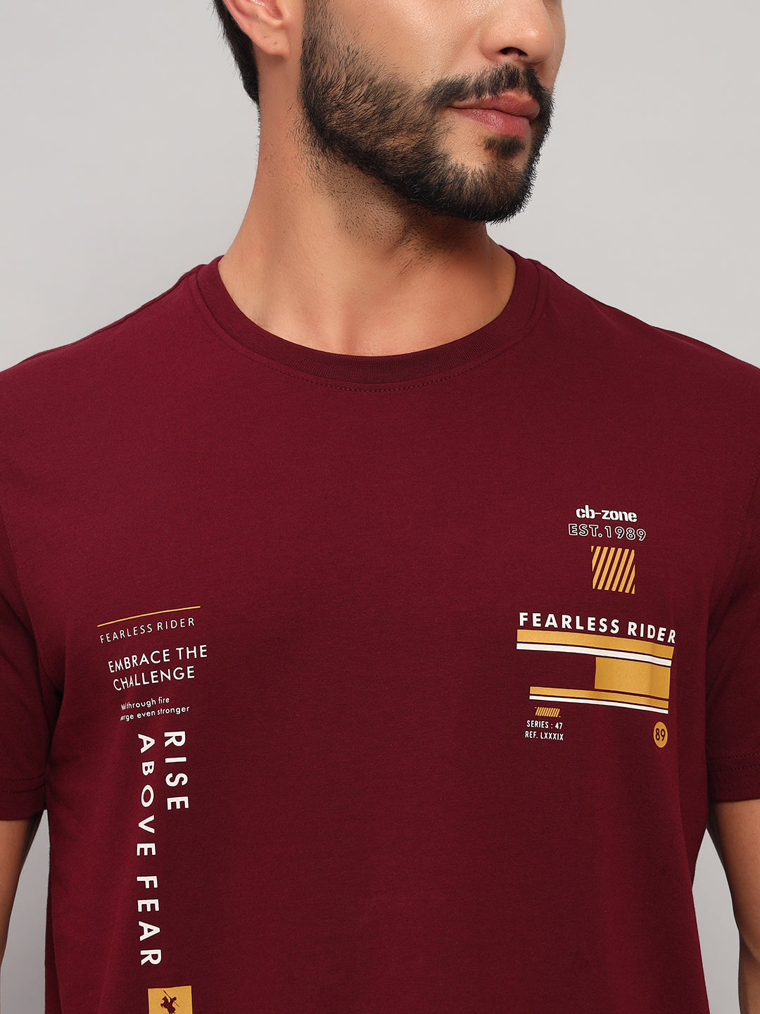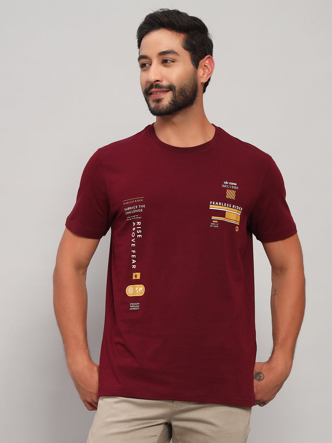 T-Shirt for Men | Breathable & Soft with Color Fastness Regular Fit Round Neck Cotton Blend Fabric Printed Pattern