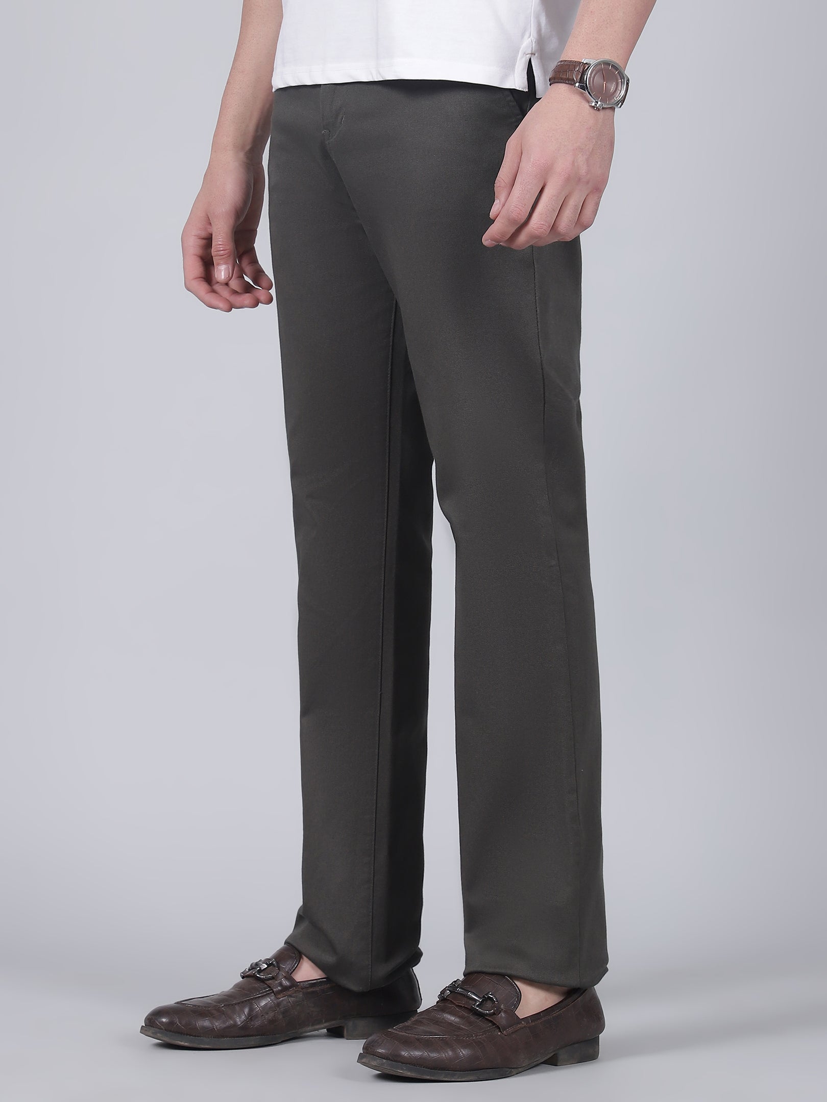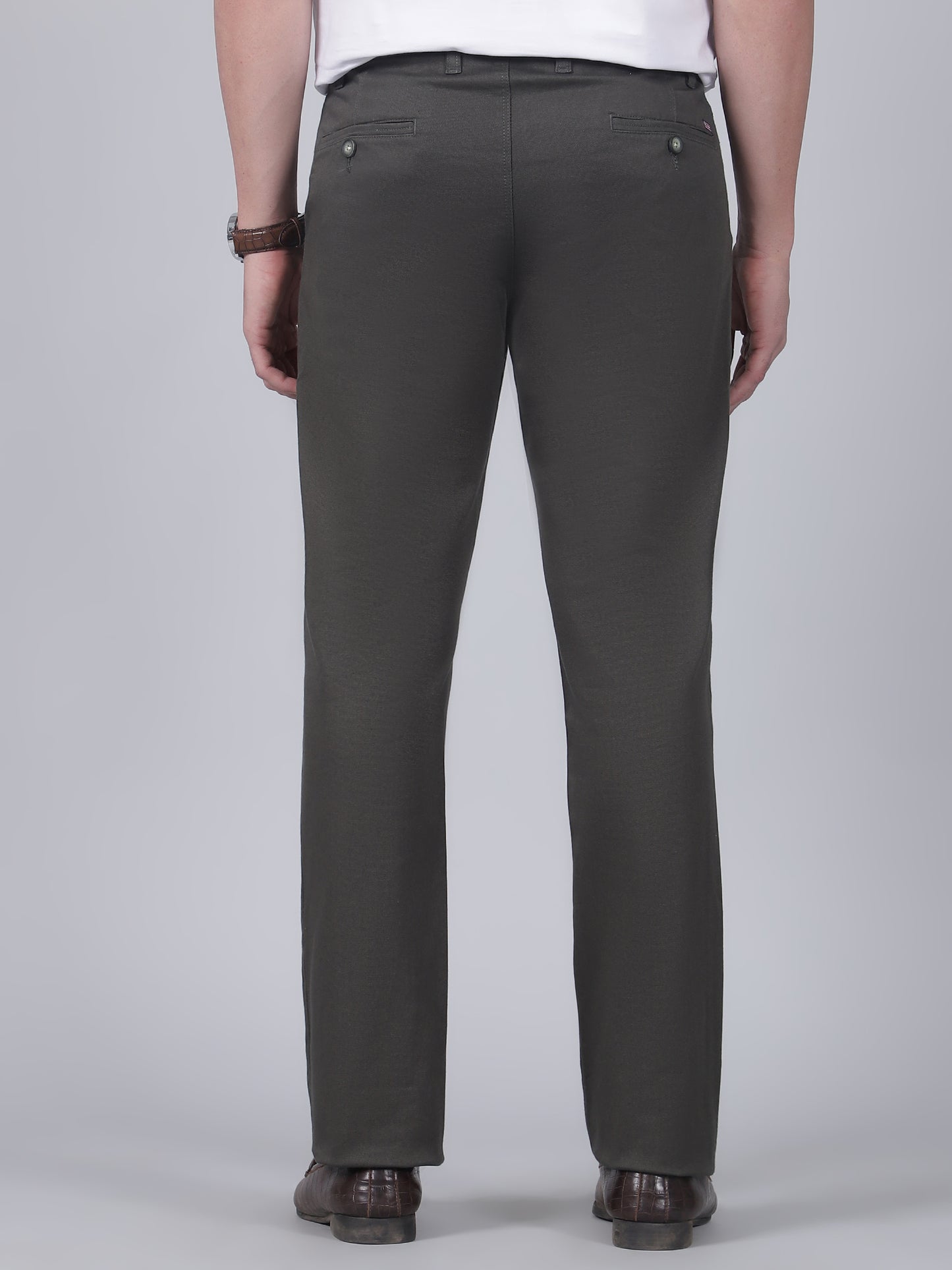 Casual Trouser for Men | Breathable & Soft with Color Fastness Regular Fit Cotton Blend Fabric Self Design Pattern Button Closure