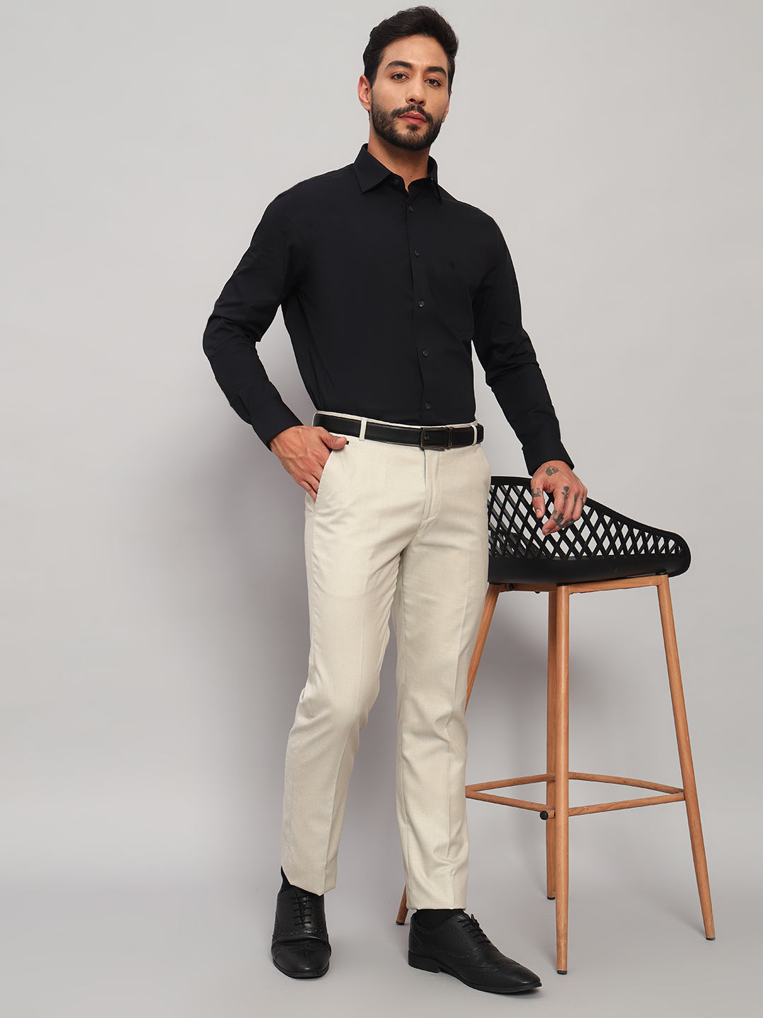 Formal Trouser for Men | Breathable & Soft with Color Fastness Regular Fit Poly Viscose Fabric Self Design Pattern Hook & Eye Closure