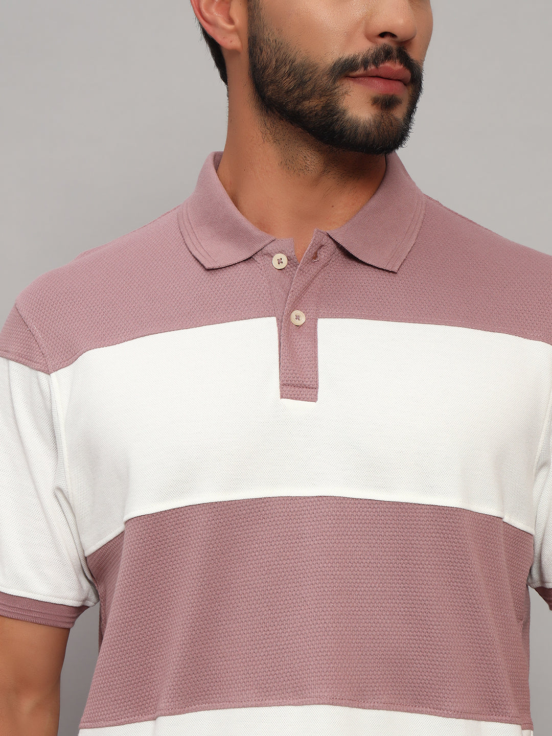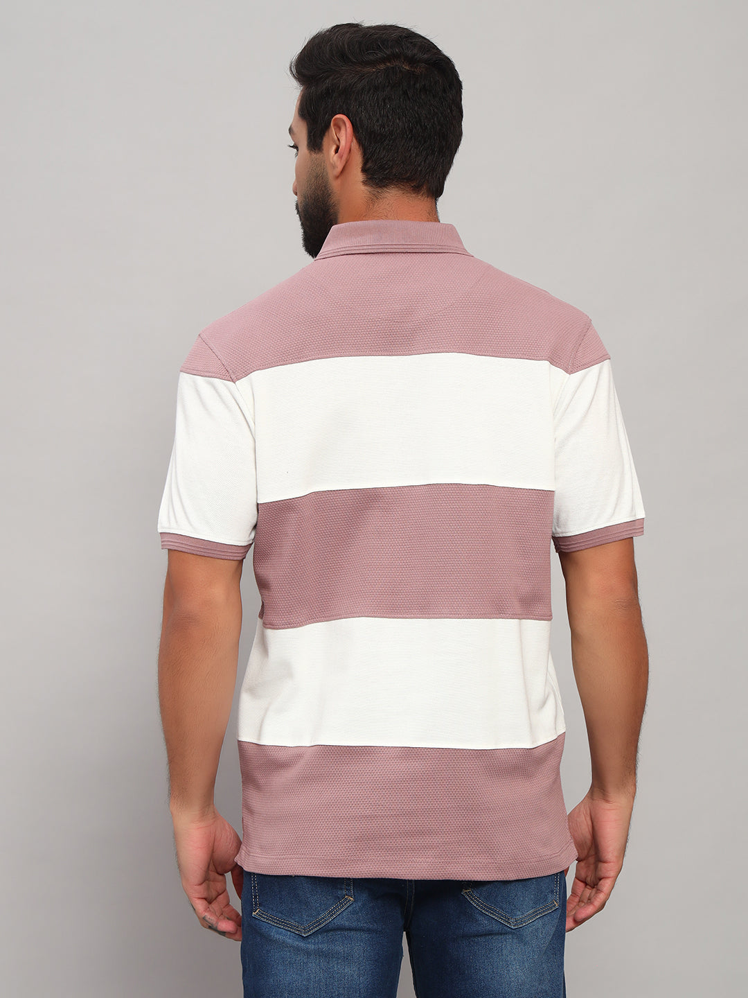 T-Shirt for Men | Breathable & Soft with Color Fastness Regular Fit Polo Neck Poly Cotton Fabric Self Design Pattern