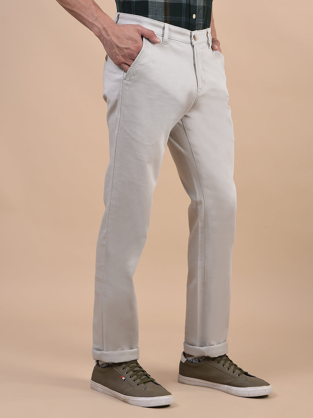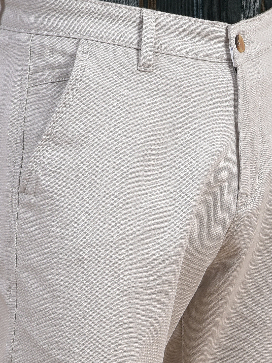 Men's Solid Beige Casual Non Plated Regular Fit Trouser